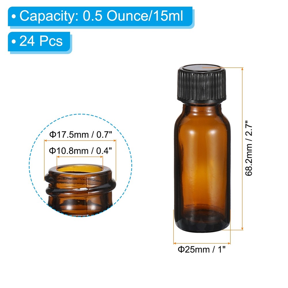 Document The round bottle is widely used in laboratories, homes, and traveling for storing or dispensing liquid such as beard oil or hair oil, essential oils, cosmetics, shampoo, conditioner, body & hand cream, lotion, or sample distribution. SpecificationCapacity: 0.5 Ounce/15mlOverall Size(inch): 68.2 x 25mm/2.7 x 1 Inch(H*OD)Mouth Inner Diameter: 10.8mm/0.4 InchMouth Outside Diameter: 17.5mm/0.7 InchColor: Amber(Bottle Body); Black(Bottle Cap)Material: Glass(Bottle Body); Plastic(Bottle Cap)Packing List: 24Pcs x Sample BottlesAdvantage1. The sample bottles are made of durable glass material that can resist high and low temperatures, has superior chemical durability, is not easily broken and deformed, and can be used for a long time. The thickened bottom of the bottle ensures bottle stability.2.Amber color protects light-sensitive samples from sunlight, extending their shelf life.3. Screw cap's tight seal reduces the risk of liquid evaporation and spills, preventing leakage of your liquid during use.InstructionTwist off the cap, pour the liquid into the bottle, and close the cap.Note: Please check the size before purchasing. Use w care to avoid breakage. 0.5oz(15ml) Glass Dispensing Bottle w Black Poly Cone Cap, 24Pcs, Amber The round bottle is widely used in laboratories, homes, and traveling for storing or dispensing liquid such as beard oil or hair oil, essential oils, cosmetics, shampoo, conditioner, body & hand cream, lotion, or sample distribution. Specification Capacity: 0.5 Ounce/15ml Overall Size(inch): 68.2 x 25mm/2.7 x 1 Inch(H*OD) Mouth Inner Diameter: 10.8mm/0.4 Inch Mouth Outside Diameter: 17.5mm/0.7 Inch Color: Amber(Bottle Body); Black(Bottle Cap) Material: Glass(Bottle Body); Plastic(Bottle Cap) Packing List: 24Pcs x Sample Bottles Advantage 1. The sample bottles are made of durable glass material that can resist high and low temperatures, has superior chemical durability, is not easily broken and deformed, and can be used for a long time. The thickened bottom of the bottle ensures bottle stability. 2.Amber color protects light-sensitive samples from sunlight, extending their shelf life. 3. Screw cap's tight seal reduces the risk of liquid evaporation and spills, preventing leakage of your liquid during use. Instruction Twist off the cap, pour the liquid into the bottle, and close the cap. Note: Please check the size before purchasing. Use w care to avoid breakage. Hot Item Payment 1.We accept eBay payment . 2.Payment must be received within 7 business days of auction closing. Shipping 1.We ship to your eBay or Paypal address. Please make sure your eBay and Paypal address is correct before you pay. 2.Items will be shipped within 1-3 business day when we received payment. 3.Delivery time depends on destination and other factors. Description Policy 0.5oz(15ml) Glass Dispensing Bottle w Black Poly Cone Cap, 24Pcs, Amber The round bottle is widely used in laboratories, homes, and traveling for storing or dispensing liquid such as beard oil or hair oil, essential oils, cosmetics, shampoo, conditioner, body & hand cream, lotion, or sample distribution. Specification Capacity: 0.5 Ounce/15ml Overall Size(inch): 68.2 x 25mm/2.7 x 1 Inch(H*OD) Mouth Inner Diameter: 10.8mm/0.4 Inch Mouth Outside Diameter: 17.5mm/0.7 Inch Color: Amber(Bottle Body); Black(Bottle Cap) Material: Glass(Bottle Body); Plastic(Bottle Cap) Packing List: 24Pcs x Sample Bottles Advantage 1. The sample bottles are made of durable glass material that can resist high and low temperatures, has superior chemical durability, is not easily broken and deformed, and can be used for a long time. The thickened bottom of the bottle ensures bottle stability. 2.Amber color protects light-sensitive samples from sunlight, extending their shelf life. 3. Screw cap's tight seal reduces the risk of liquid evaporation and spills, preventing leakage of your liquid during use. Instruction Twist off the cap, pour the liquid into the bottle, and close the cap. Note: Please check the size before purchasing. Use w care to avoid breakage. Hot Item Payment 1.We accept eBay payment . 2.Payment must be received within 7 business days of auction closing. Shipping 1.We ship to your eBay or Paypal address. Please make sure your eBay and Paypal address is correct before you pay. 2.Items will be shipped within 1-3 business day when we received payment. 3.Delivery time depends on destination and other factors.