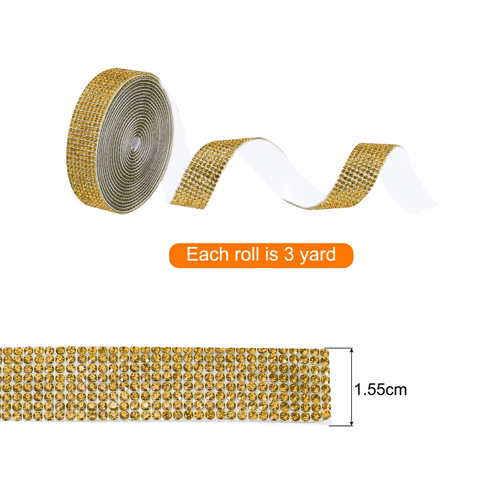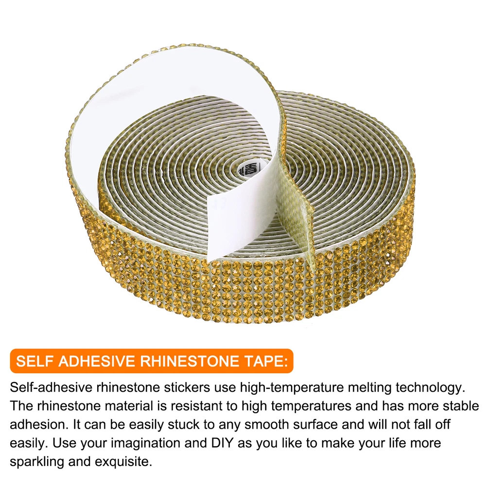 0.6 Inch Self Adhesive Rhinestone Strips 3 Yard for Crafts,Gold