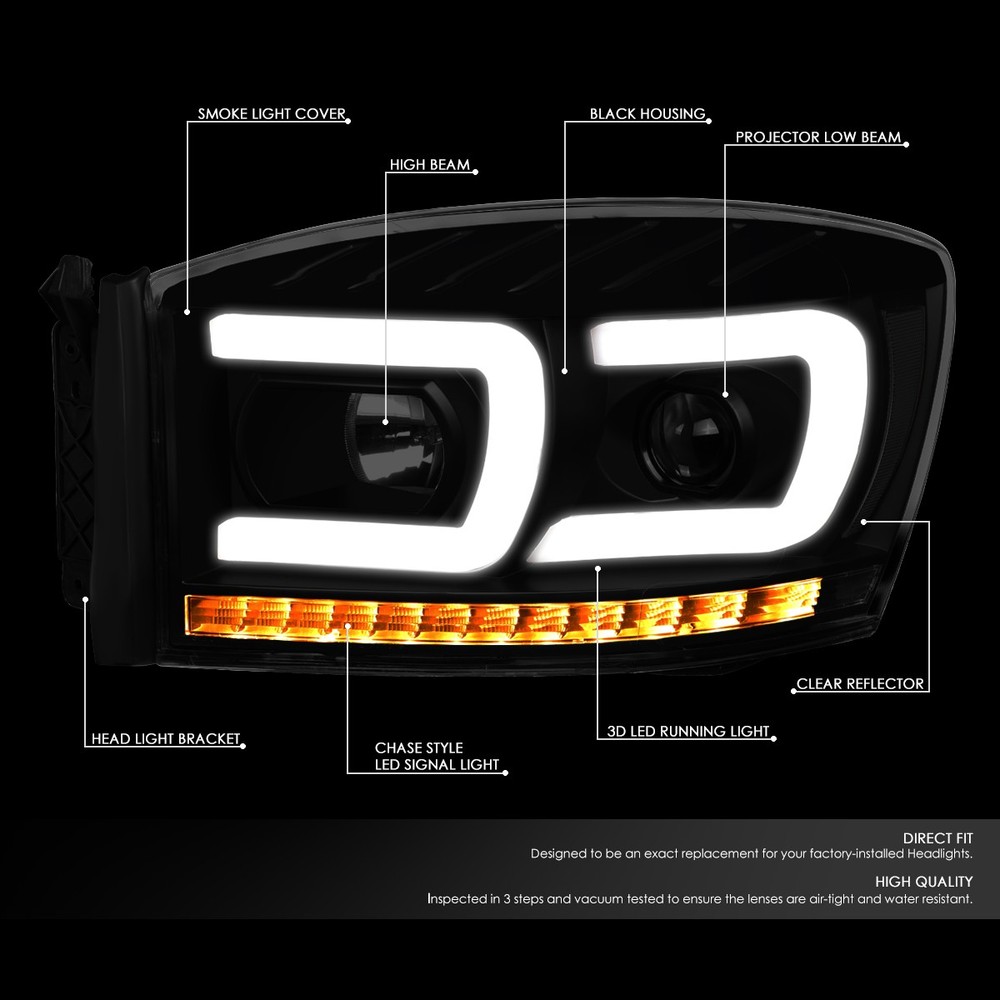 $ 48.52[C-LED DRL Sequential Signal] For 09-24 Dodge Ram Truck Headlights Black/Clear
