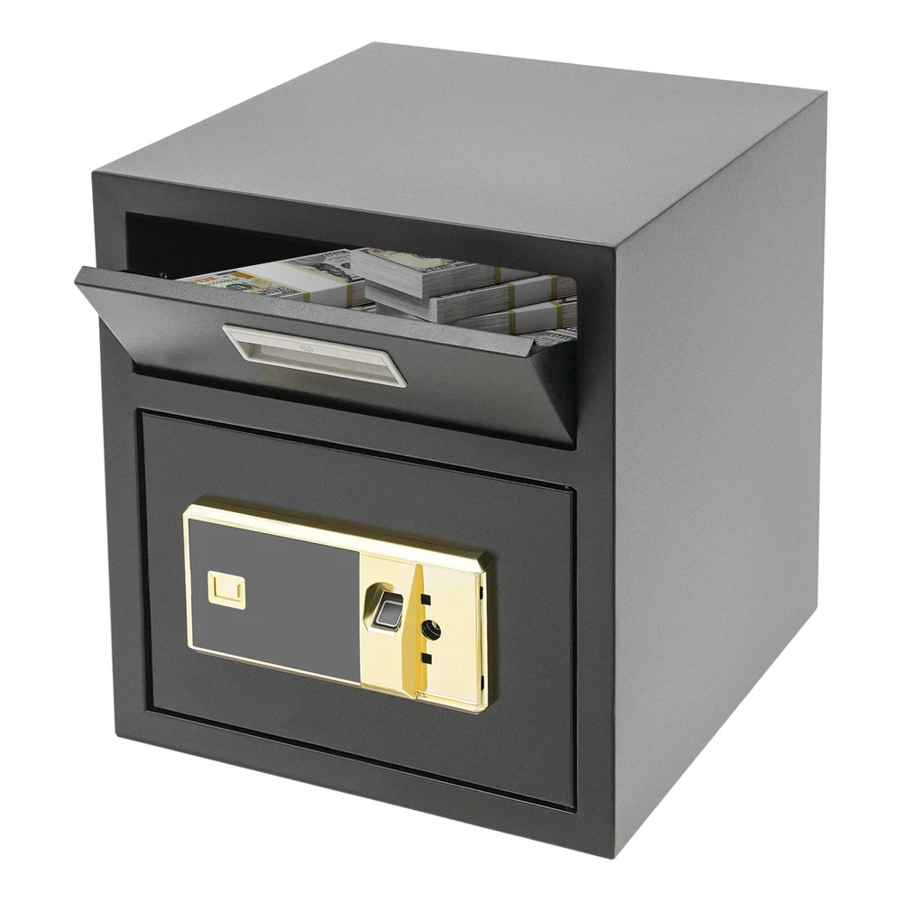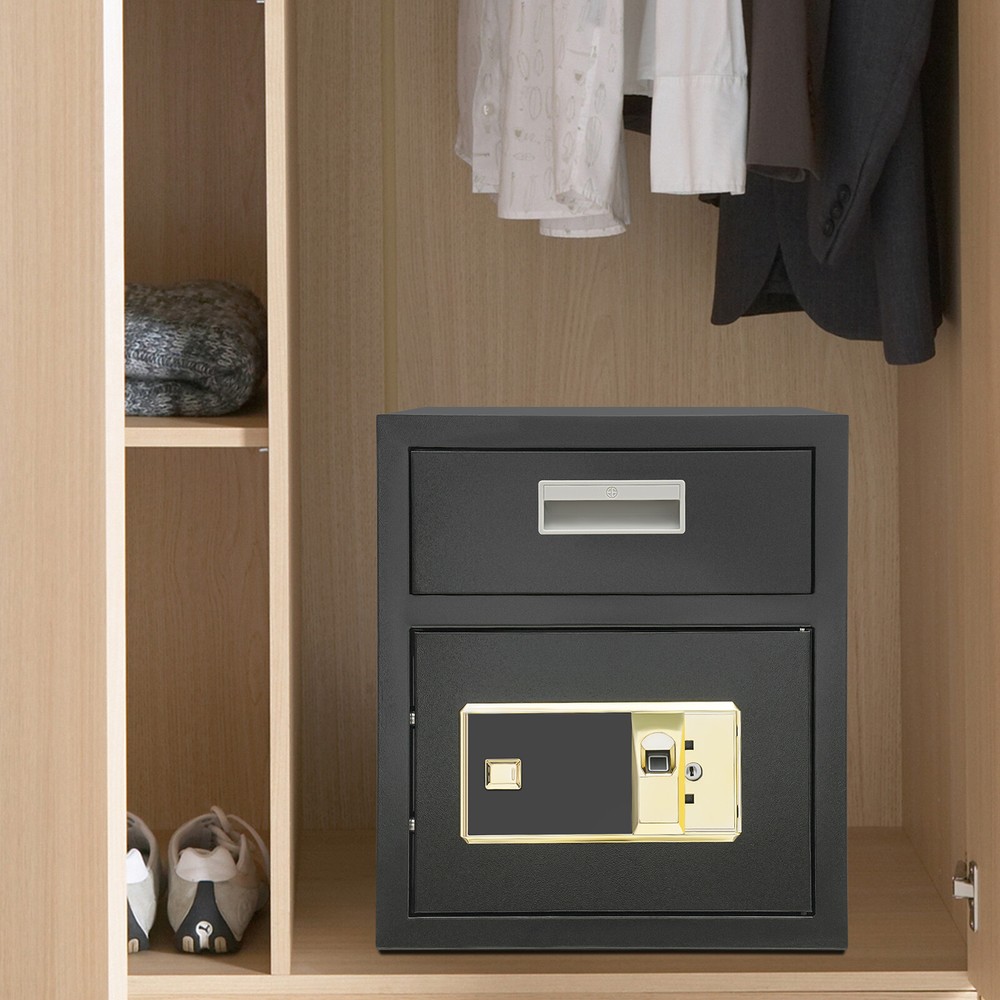 0.64ft³ Drop Box for Money&Mail Drop Slot Safe Cash Depository Safe Black W/Keys Description A high-quality safe can enhance your sense of security even more. This safe is made of sturdy steel and has strong reliability. The sturdy anti-theft lock can protect your valuable property, and the intelligent alarm mechanism allows you to keep an eye on its status at all times. Having this high-quality safe allows you to confidently go out. Key Features Build to Last: It is made of sturdy and thickened steel plates, and adopts laser cutting and galvanizing processes, with the advantages of high strength, rust resistance, and impact resistance, providing you with long-lasting and reliable protection. Large Capacity: The large size of 14*14*15.7 inches provides you with 0.64ft³ of space to help you organize important items and reduce clutter. The wide top can also be used for temporary storage of small items. Powerful Protection: The sturdy lock, 1mm thickened material, three types of unlocking keys((fingerprint, key, password)), and high-quality lock tongues provide your valuables with anti-theft protection. Intelligent Alarm Mechanism: If the password is entered incorrectly three times, an alarm will sound and it will automatically lock for 1 minutes. An alarm will also sound when the battery is low. The intelligent alarm mechanism enhances its security. Convenient to Use: The delivery port with a large opening angle allows you to deliver important items into the safe without opening the door, making it more convenient to use. Easy Installation: Thanks to its pre-drilled mounting holes and screws, you can mount this product on the wall or you can directly place it on the floor for more flexibility and convenience. Nice Appearance: The classic black and smooth lines give the product a sense of modernity and fashion, which can blend with most home and office decoration styles. Customer Service: Communication is the best way to solve problems. If you have any problems, please feel free to contact us. We will reply and solve the problem for you as soon as possible. Details Round Corners: The smooth corners can better ensure safety during installation and use. Practical Handle: The handle design on the delivery port makes it easy for you to open and drop items. Application It is an ideal choice for families, offices, hotels, schools, hospitals, shopping malls, banks, and restaurants to store valuable assets and belongings, such as money, check payments, files, documents, birth certificates, social security cards, coins, etc. Specification Color: Black Style: Modern Material: Steel Process: Laser Cutting, Galvanizing Shape: Rectangular Assembly Required: No Mounting Type: Wall Mount, Floor Mount Unlocking Methods: Password, Fingerprint, Key Capacity: 0.018m³/0.64ft³ Steel Board Thickness: 1mm/0.04in Battery Type: 4*AA Batteries(Not Included) Safe Inner Size: 33*33*25.4cm/13*13*10in Product Size: 35.2*35.5*40cm/14*14*15.7in Package Size: 42.2*42.2*47cm/16.61*16.61*18.5in Gross Weight: 8.5kg/18.74 lbs Net Weight: 7.6kg/16.76 lbs Package Included 1* Safe 4* Keys 1* Spare Battery Box 1* English Manual All Accessories for Assembly Notes 1.Please read the manual carefully before using it and pay attention to the dimensions of this safe before purchasing. 2.It is advisable to set the combination when the safe door is open. After setting the code, you should enter the new code several times. The door can be locked after confirmation. You can change the password to their specific password after purchasing a new safe. Please refer to the manual for the change method. 3.Please keep the spare key and spare battery(not included) in a safe place. 4.Please check that all keys are complete. 5.Please do not leave large amounts of cash and valuables unattended. 6.When moving and relocating, please do not hit the safe to avoid damage. 7.When not in use for a long time, please remove the battery from the battery box. 8.Please bring your own 4*AA batteries. 9.Please allow the slight color difference caused by the shooting light and 1-3cm error due to manual measurement, and make sure you do not mind before ordering. Payment Delivery details Terms of sales About us Contact us Payment We accept ebay payment 。 Fees such as import duties, taxes are not included in the item price or shipping costs. These charges are the buyer's responsibility. Delivery details Shipping: 2-9 working days to: USA Terms of sales We maintain high standards of excellence and strive for hundred percent customer satisfaction. Feedback is very important to us. We hope that you contact us immediately before you give neutral or negative feedback, so that we can address your concerns. It is impossible to address issues if we do not know about them! About us Your satis faction is our ultimate goal. We work hard to earn your trust and future business. Our certified technicians have tested each item before shipping. The unit comes with 1 year limited warranty on all manufacturing defects. a) If you receive a defective item, you may return it or ask for a discount. Please contact us within 14 days after you receive the package. b) What you returned must be intact and in its original packaging as re? u. Customer is responsible for shipping costs of the returned item. c) We will cover the cost of shipping back t with the shipping rate indicated in the registration page. We will send you a new unit or refund the full payment you paid. Thank you. Contact us Business Hour Business Hour: Monday To Friday: 8:30 AM to 5:00 PM (Beijing China time) Due to time zones, our reply to your questions may not be immediately. But within above working time, we will reply your email within 24 hours. If it's non-workdays, please kindly be patient and wait till Monday. Please contact us with ebay message. Please feel free to contact us if you have any questions. Monday To Friday: 8:30 AM to 5:00 PM (Beijing China time) Due to time zones, our reply to your questions may not
