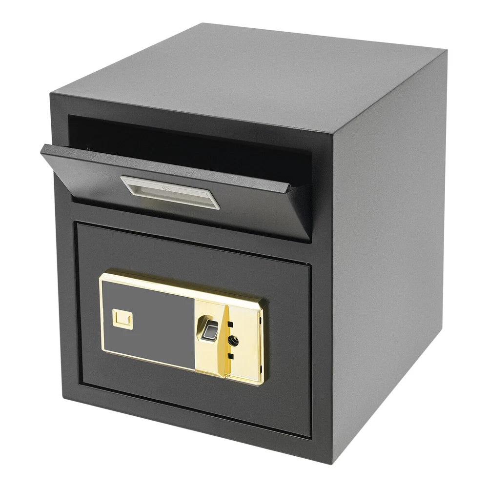 Specification Color: Black Style: Modern Material: Steel Process: Laser Cutting, Galvanizing Shape: Rectangular Assembly Required: No Mounting Type: Wall Mount, Floor Mount Unlocking Methods: Password, Fingerprint, Key Capacity: 0.018m³/0.64ft³ Steel Board Thickness: 1mm/0.04in Battery Type: 4*AA Batteries(Not Included) Safe Inner Size: 33*33*25.4cm/13*13*10in Product Size: 35.2*35.5*40cm/14*14*15.7in Package Size: 42.2*42.2*47cm/16.61*16.61*18.5in Gross Weight: 8.5kg/18.74 lbs Net Weight: 7.6kg/16.76 lbs Package Included 1* Safe 4* Keys 1* Spare Battery Box 1* English Manual All Accessories for Assembly 0.64ft3 Drop Box for Money&Mail Drop Slot Safe Cash Depository Safe Black W/Keys Description A high-quality safe can enhance your sense of security even more. This safe is made of sturdy steel and has strong reliability. The sturdy anti-theft lock can protect your valuable property, and the intelligent alarm mechanism allows you to keep an eye on its status at all times. Having this high-quality safe allows you to confidently go out. Key Features Build to Last: It is made of sturdy and thickened steel plates, and adopts laser cutting and galvanizing processes, with the advantages of high strength, rust resistance, and impact resistance, providing you with long-lasting and reliable protection. Large Capacity: The large size of 14*14*15.7 inches provides you with 0.64ft³ of space to help you organize important items and reduce clutter. The wide top can also be used for temporary storage of small items. Powerful Protection: The sturdy lock, 1mm thickened material, three types of unlocking keys((fingerprint, key, password)), and high-quality lock tongues provide your valuables with anti-theft protection. Intelligent Alarm Mechanism: If the password is entered incorrectly three times, an alarm will sound and it will automatically lock for 1 minutes. An alarm will also sound when the battery is low. The intelligent alarm mechanism enhances its security. Convenient to Use: The delivery port with a large opening angle allows you to deliver important items into the safe without opening the door, making it more convenient to use. Easy Installation: Thanks to its pre-drilled mounting holes and screws, you can mount this product on the wall or you can directly place it on the floor for more flexibility and convenience. Nice Appearance: The classic black and smooth lines give the product a sense of modernity and fashion, which can blend with most home and office decoration styles. Customer Service: Communication is the best way to solve problems. If you have any problems, please feel free to contact us. We will reply and solve the problem for you as soon as possible. Details Round Corners: The smooth corners can better ensure safety during installation and use. Practical Handle: The handle design on the delivery port makes it easy for you to open and drop items. Application It is an ideal choice for families, offices, hotels, schools, hospitals, shopping malls, banks, and restaurants to store valuable assets and belongings, such as money, check payments, files, documents, birth certificates, social security cards, coins, etc. Specification Color: Black Style: Modern Material: Steel Process: Laser Cutting, Galvanizing Shape: Rectangular Assembly Required: No Mounting Type: Wall Mount, Floor Mount Unlocking Methods: Password, Fingerprint, Key Capacity: 0.018m³/0.64ft³ Steel Board Thickness: 1mm/0.04in Battery Type: 4*AA Batteries(Not Included) Safe Inner Size: 33*33*25.4cm/13*13*10in Product Size: 35.2*35.5*40cm/14*14*15.7in Package Size: 42.2*42.2*47cm/16.61*16.61*18.5in Gross Weight: 8.5kg/18.74 lbs Net Weight: 7.6kg/16.76 lbs Package Included 1* Safe 4* Keys 1* Spare Battery Box 1* English Manual All Accessories for Assembly Notes 1.Please read the manual carefully before using it and pay attention to the dimensions of this safe before purchasing. 2.It is advisable to set the combination when the safe door is open. After setting the code, you should enter the new code several times. The door can be locked after confirmation. You can change the password to their specific password after purchasing a new safe. Please refer to the manual for the change method. 3.Please keep the spare key and spare battery(not included) in a safe place. 4.Please check that all keys are complete. 5.Please do not leave large amounts of cash and valuables unattended. 6.When moving and relocating, please do not hit the safe to avoid damage. 7.When not in use for a long time, please remove the battery from the battery box. 8.Please bring your own 4*AA batteries. 9.Please allow the slight color difference caused by the shooting light and 1-3cm error due to manual measurement, and make sure you do not mind before ordering. Payment Delivery details Terms of sales About us Contact us Payment We accept ebay payment 。 Fees such as import duties, taxes are not included in the item price or shipping costs. These charges are the buyer's responsibility. Delivery details Shipping: 2-9 working days to: USA Terms of sales We maintain high standards of excellence and strive for hundred percent customer satisfaction. Feedback is very important to us. We hope that you contact us immediately before you give neutral or negative feedback, so that we can address your concerns. It is impossible to address issues if we do not know about them! About us Your satis faction is our ultimate goal. We work hard to earn your trust and future business. Our certified technicians have tested each item before shipping. The unit comes with 1 year limited warranty on all manufacturing defects. a) If you receive a defective item, you may return it or ask for a discount. Please contact us within 14 days after you receive the package. b) What you returned must be intact and in its original packaging as re? u. Customer is responsible for shipping costs of the returned item. c) We will cover the cost of shipping back t with the shipping rate indicated in the 
