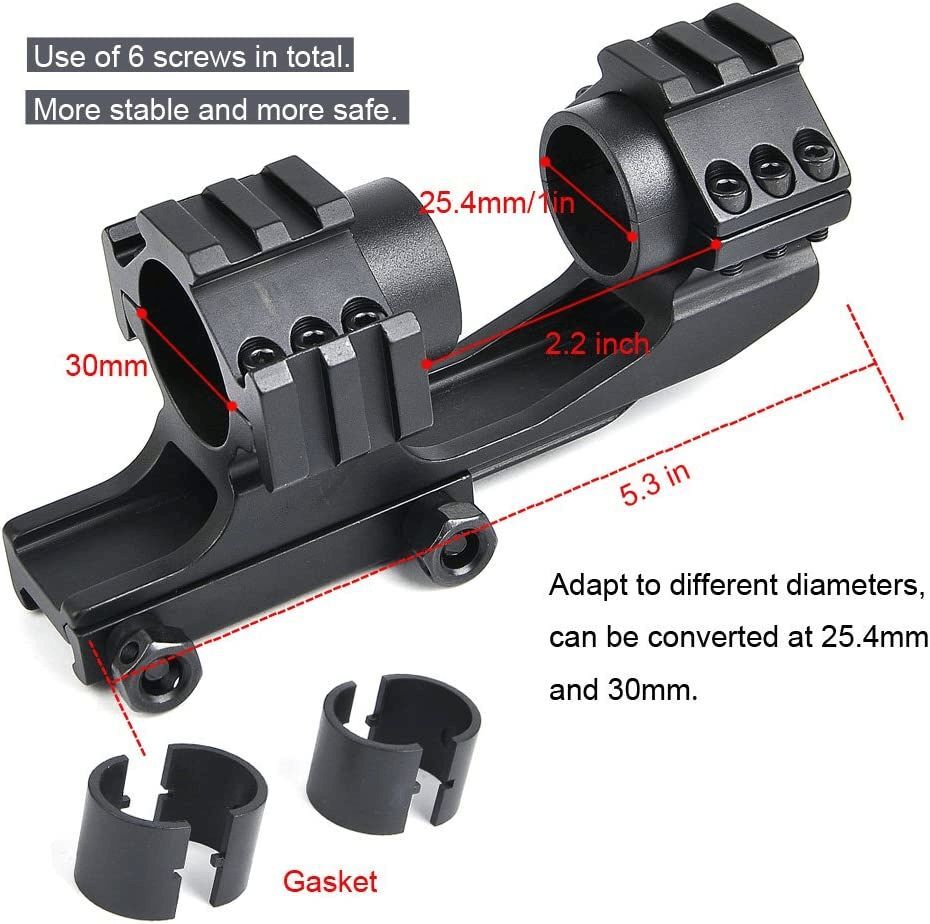 Scope Ring Features Easy to Operate Scope mount with two round buttons for for both 30mm and 25.4 mm (1 inch) body tube rifle scopes. Suitable for High Recoil Hold up under heavy recoil sustained fire in the most extreme shooting circumstances. Specifications: Material: Aluminum Alloy Color: Black Ring Diameter: 30mm (1.2”) Reducer Diameter: 25.4mm (1”) Product weight: 0.5lbs. Package dimensions: 7.0 inch x 2.5 inch x 2.56inch Package includes: 1 x Dual Ring Scope Mount 2 x Plastic ring diameter 1 inch(25.4mm) 1 x Wrench 100Pcs Blue Heat Shrink Female Crimp Wire Connectors Spade 16-14 Gauge Marine 11.9 USD Free shipping 50~200Pcs Heat Shrink Ring Terminals 12-10 GA Gauge Marine Wire Crimp Connectors 8.9 USD Free shipping Tactical PEPR style Cantilever Rifle Scope Mount with 30mm-1" Reducer Adapters 15.09 USD Free shipping 1 Pair 25.4mm/1'' Ring Mounts High Profile for Rifle Scope Dovetail Rail Mount 7.9 USD Free shipping One Pair of 1" Laser / Scope Ring Mount for 10mm Dovetail Rail - High Profile 6.95 USD Free shipping Tactical M-LOK Offset Mount 1" Ring Mount for Flashlight Scope MLOK Rail 6.9 USD Free shipping Scope Barrel Mount 1" 25mm 30mm Ring Adapter with 20mm Weaver Picatinny Rail 6.79 USD Free shipping Dual Ring 1''/30mm Cantilever Scope Mount Rings For Rifle Picatinny Rail Weaver 11.9 USD Free shipping 45 Degree Offset Rail Mount 4 Slots 55mm Width For Picatinny Weaver Top Rail 7.95 USD Free shipping 2 PCS High Profile 1" Scope Ring See Through Laser Scope Mount for Picatinny 6.95 USD Free shipping 2Pcs 5-Slot Quick Release Detach QR QD 1/2" Riser Mount for Picatinny Rail 13.59 USD Free shipping 1 Pair 30mm Scope Rings Mount Set High Profile for Rifle Picatinny Weaver Rail 7.9 USD Free shipping For Mossberg 500 Remington 870 12GA 1" Mag Tube Picatinny Laser Mount 2 Pack 11.9 USD Free shipping 2 Pack For Mossberg 500 Remington 870 12GA 1" Tube Picatinny Weaver Laser Mount 11.9 USD Free shipping Ultralight Flip Up Sight 45 Degree Offset Rapid Transition Front and Backup Rear 15.9 USD Free shipping For Mossberg 500 Remington 870 12GA 1" Tube Picatinny Laser Torch Mount 6.9 USD Free shipping 1" High Profile Compact Riser Mount 3 Slot Fit Riflescope Picatinny Weaver Rail 7.59 USD Free shipping 3 Slots Compact Riser Mount for Scopes- Low/Medium/High Profile Picatinny Rail 7.49 USD Free shipping