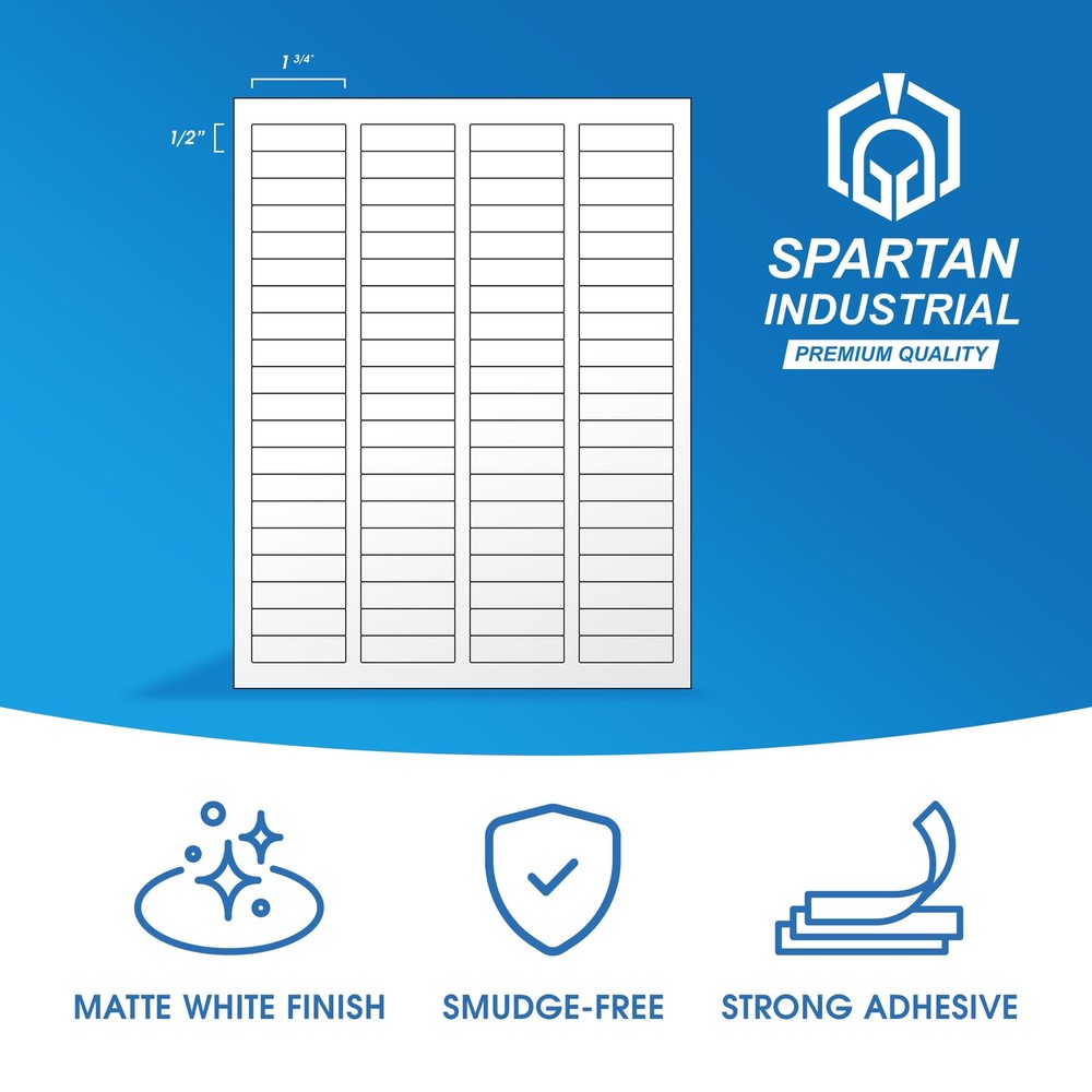 Description Laser Label - the solution for all your labeling needs. With 1 3/4" X 1/2" dimensions and 500 sheets per pack, these labels are perfect for a variety of applications and printable labels for your printer. They're compatible with both laser and inkjet printers, making them a versatile choice for any home or office. These labels are made with high-quality, white sticker paper and feature a strong adhesive that will keep them securely in place. You can use them in any weather conditions without worrying about them fading or smudging. In addition to their durability and versatility, these labels are also incredibly easy to use. Simply print your design onto the label paper, peel off the backing, and stick the label onto your chosen surface. Whether you need labels for classroom purposes, wine bottles, garage spots personalization, identification and naming, or gifting, our laser labels are the perfect choice. Order your pack today and start labeling with confidence. Specifications: Pack of 500 label sheets, 80 blank label stickers per sheet, 40000 labels total. Size: 1.75 X 0.5 inches (length X width). Color: White. Flexible Labeling Solution: Print personalized labels and stickers from the comfort of your home or office. Our 1 3/4 X 1/2 labels are perfect for bulk mailing, organization, and product packaging, as well as crafting and school projects. Quality You Can Trust: Our label printer paper creates smudge-free, fade-resistant prints that won’t yellow over time. Simply peel and stick to virtually any surface, including paper, plastic packaging, cardboard, vinyl, metal, and glass. Versatile Surface: Let your creativity take over and design labels unique to your brand or aesthetic. The matte label surface allows you to easily print, write, or draw on it with a pencil, pen, marker, or other writing utensil. Compatibility: The Shipping ’s blank sticker labels are designed to work with most inkjet and laser printers. Create custom labels using templates available for download in PDF, Microsoft Word, Adobe Illustrator, and Adobe Photoshop formats.