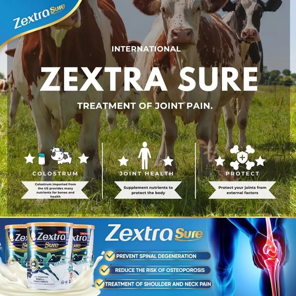 SHIPPED FROM USA 1 Can Zextra Sure Milk / Knee Pain Back Pain (400g) Back Pain Strengthen Bones. ⭐️Good for joints Contains 14 vitamins, minerals and a rich source of Omega 3-6-9 and Calcium for heart, brain and exercise. With Polycan® compound, it strengthens joint cartilage, reduces bone resorption rate and accelerates new bone formation ⭐️Recommended by Nutritionist Zextra Sure combines the golden ratio of Polycan® compounds that are clinically proven, GMP, HALA compliant and FDA approved in the USA. ⭐️2 cups per day After 14 days: The pain will slowly subside and nutrients will begin to focus on the painful area, flush out toxins and help reduce joint swelling and inflammation. Some people may be able to move around easily without pain. 👍 Authenticity Guarantee 👍 New and Unopened 👍 Best price and shipped from USA