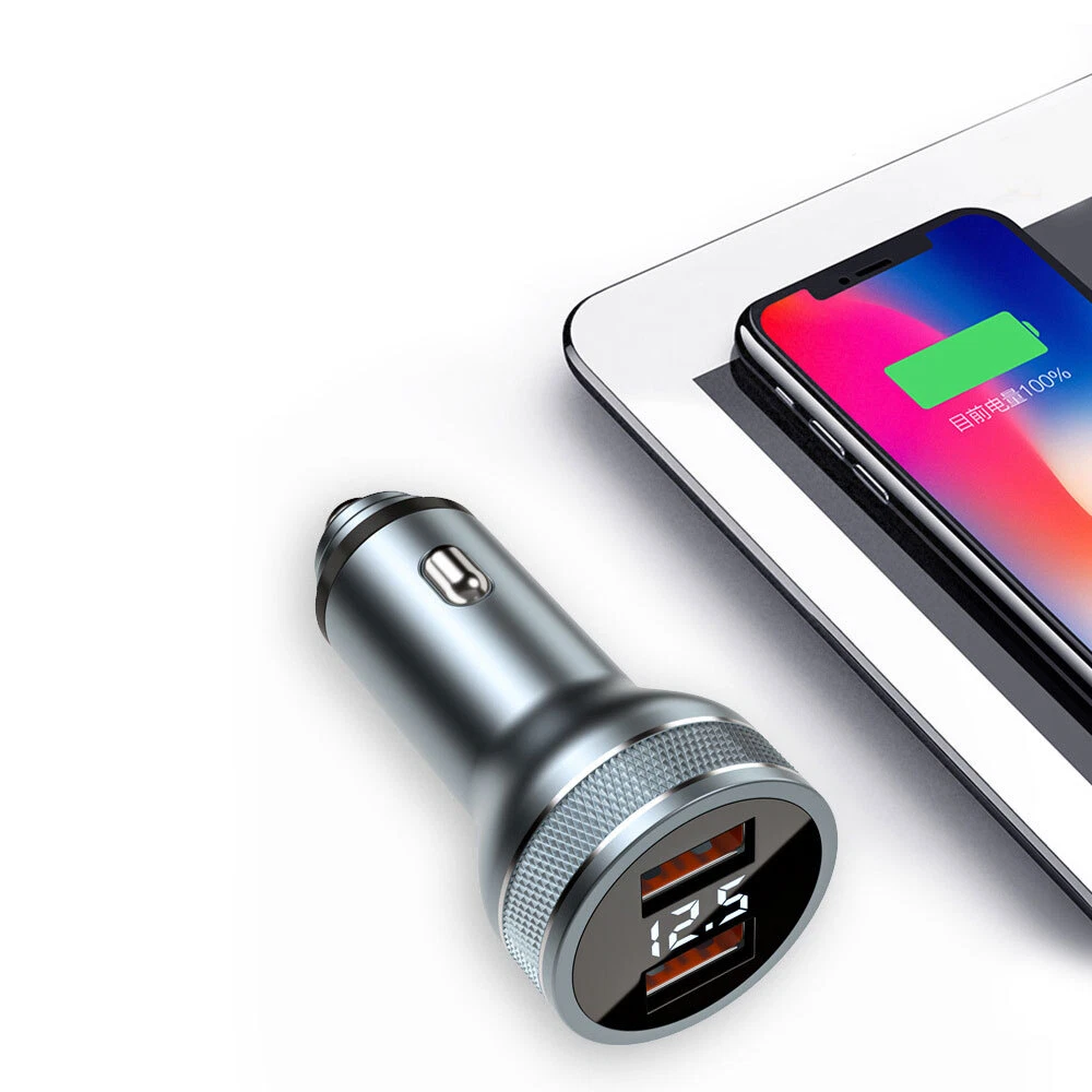 1* Car Dual USB Charger Quick Charge 3.0 Fast Charging LED Voltmeter Accessories