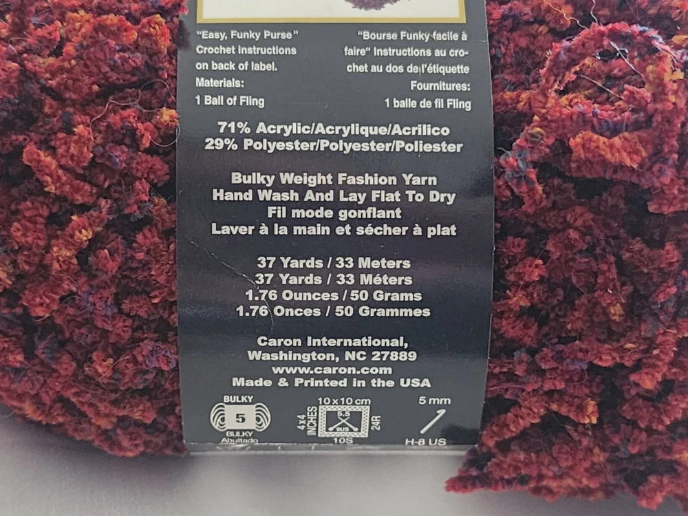 1 Caron Fling Chenille Bulky #5 Weight Yarn Color # 0003 PAPRIKA 1.76 oz.