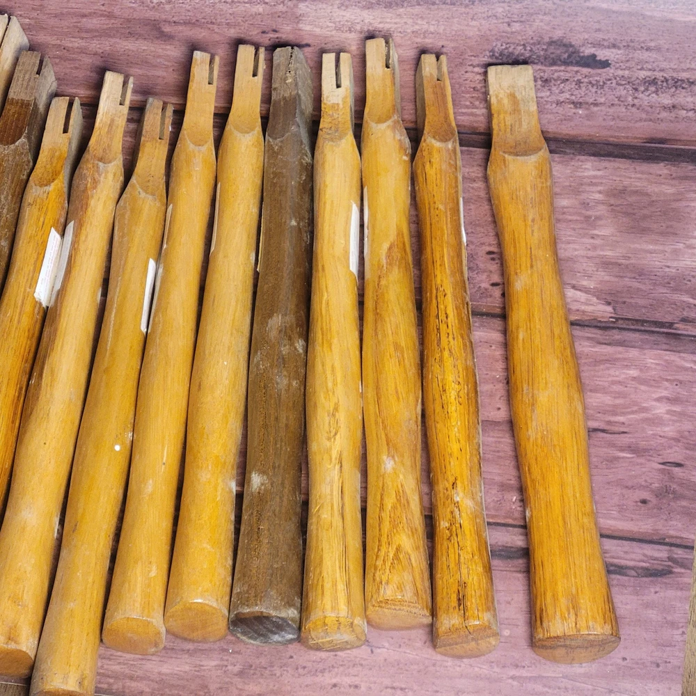 I have a bunch of these unused replacement axe/hammer handles for sale. Theyre rock solid and come finished with a lacquer coat for waterproofing/durability. They are solid hardwood (hickory?) and measure between 14-17" long. They are suitable for both axes or hammers. They have a sturdy and comfortable grip and will serve you well. These are first come first serve. If you want a specific handle (all handles are shown in the listing photos) let me know and Ill ship your choice if its still available, or the closest match if its not. If you dont have a preference I'll ship one at random. Get yours today while they last!