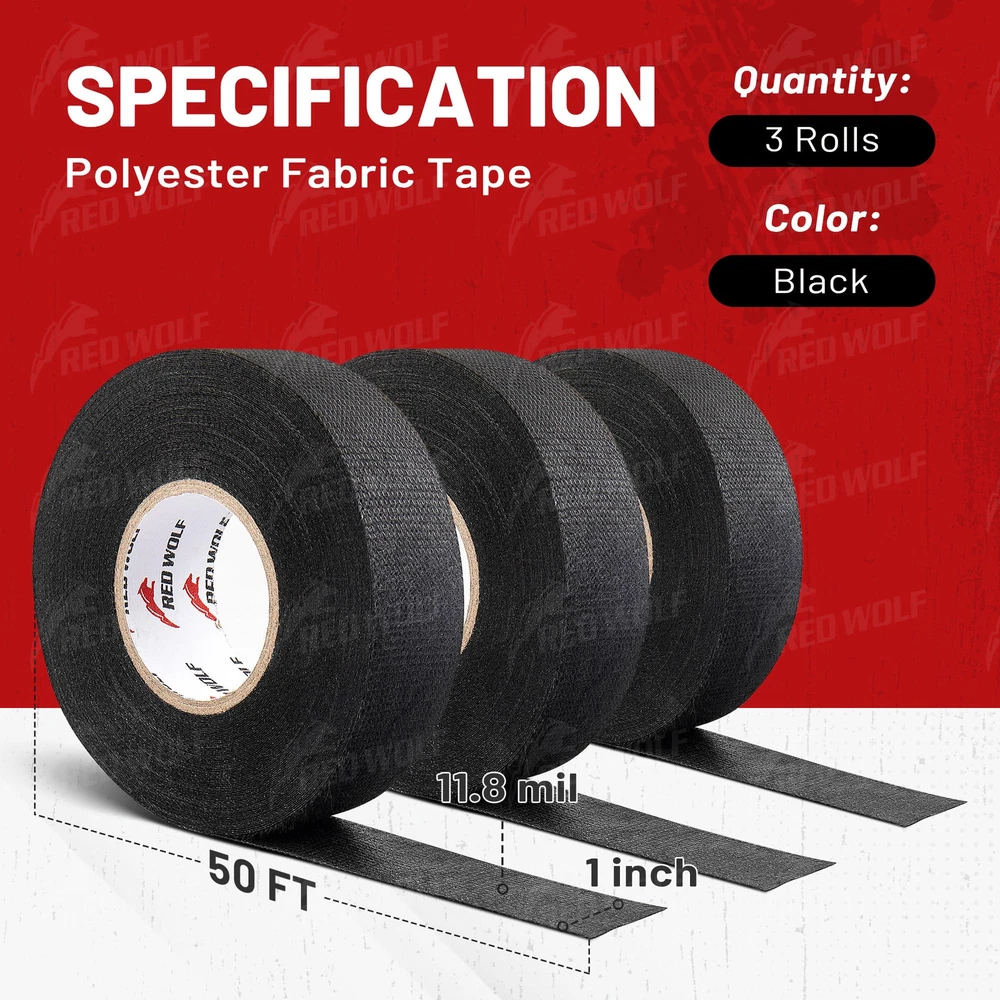 1 Inch by 50-Feet wire harness tape is mainly used in the engine compartment and battery winding insulation and protection, meets excellent stain resistance and aging resistance and reduce the noise Professional cloth tape material: It is made of polyester non-woven fabric and strong acrylic pressure sensitive adhesive; High viscosity, high temperature resistance ( -40°F to 221°F ), well seal and excellent flexibility; The longer the electrical tape is used, the stronger the stickiness Easy to tear: Just stick one end of tape to cable, start pulling and wrapping onto the cable and tear it gently; No need other tools; You can decide the length of the wire cloth tape according to you needs Feature: The wiring harness tape maintains features high adhesive force; Good noise reduction, hand tearable and heat insulation performance, and wear resistance; It is suitable for electrical automotive engine and circuit maintenance to achieve the purpose of insulation protection Specification: Total 3 rolls; Each roll black electrical harness tape is 50 FT long and 1 inch wide; It is work for your different daily needs in diversified use scenarios