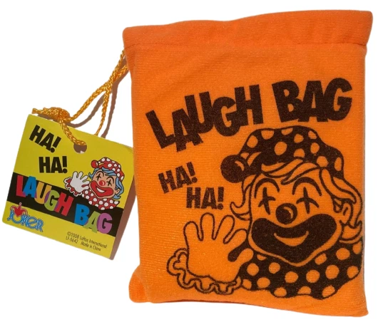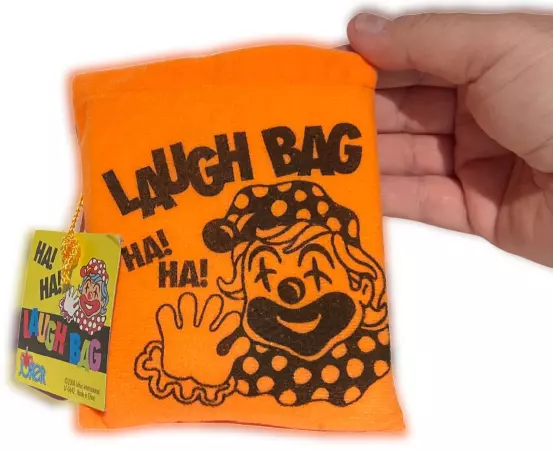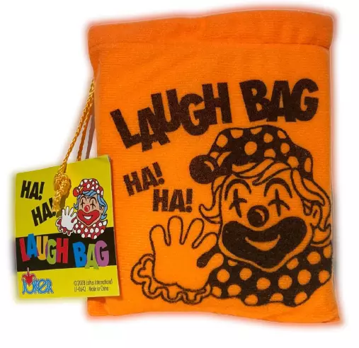 NEW 1 Laugh Bag! BEST PRICE ON EBAY! Push the button on the small enclosed box and hear the crazy howling laughter sounds. Bright orange soft fabric bag with foam inside approx. 5.5" x 4.5" Includes 3 cell batteries. WOW FREE SHIPPING! Great prop for clowns, MC's, jugglers, magicians, comedians and jokesters! Please stop by The Visual Comedy Shop for other fun, top notch quality items featuring the Geist Visual Comedian DVD!