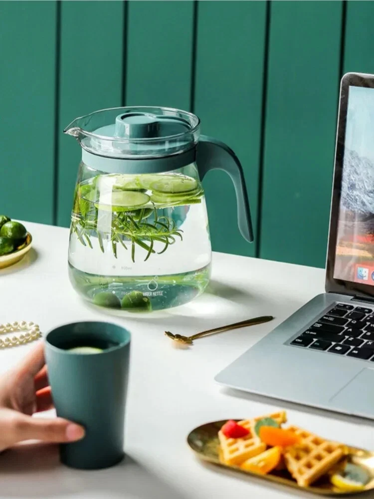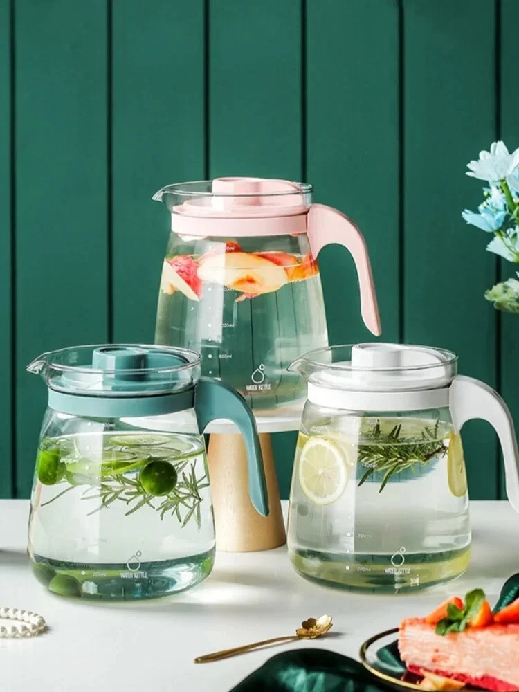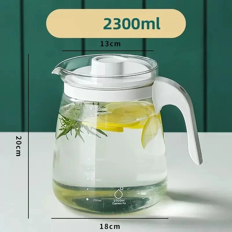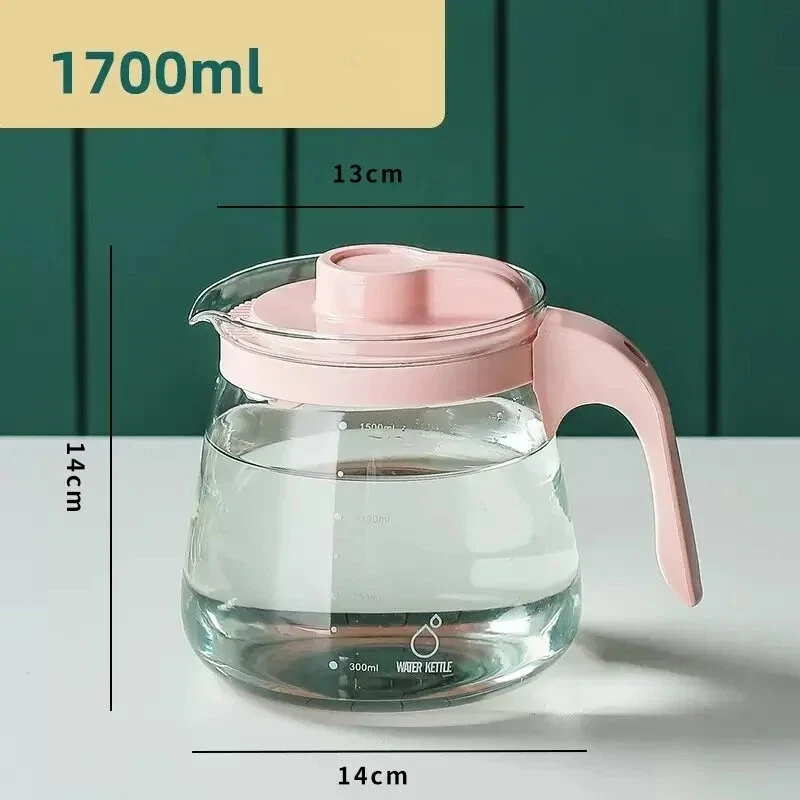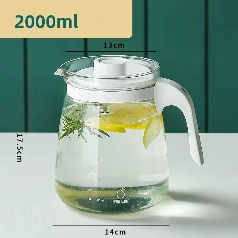 Large Capacity Glass Kettle High Temperature Resistance Water Bottle Household Transparent Teapot Coffee Jug Drinking Utensil Description: Material: Glass Capacity :1700ml/ 2000ml / 2300ml Color: White/Pink/Green Easy to clean, suitable for home use, offices, cafes, hotels, etc Note: 1. Due to the different monitor and light effect, the picture may not reflect the actual color of the item. Thank you! 2. Please allow 0.5-2cm error due to manual measurement. 3. If you encounter product quality problems, please contact us, we will handle it for you as soon as possible.