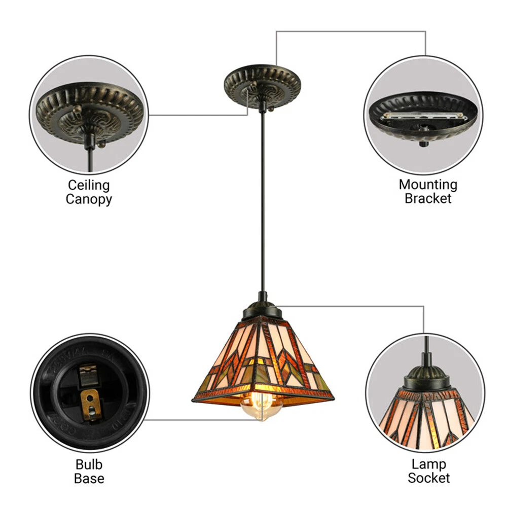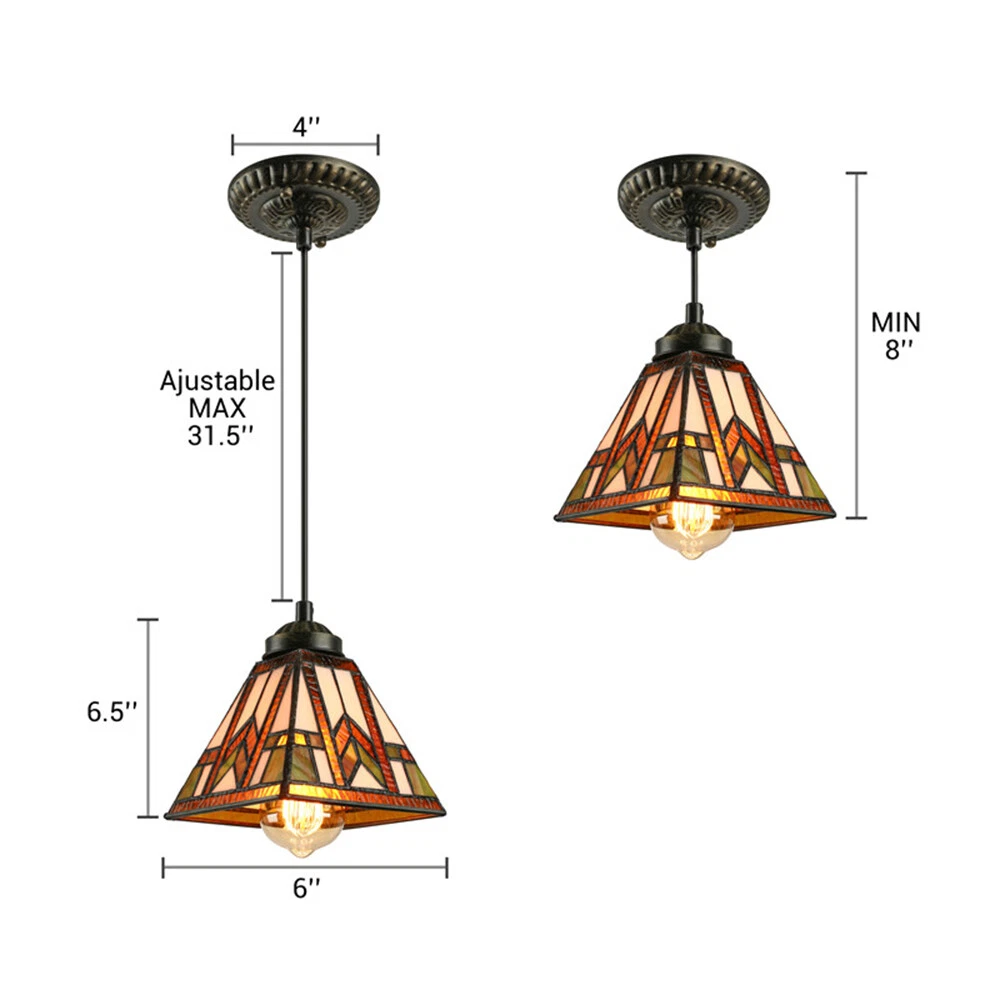 Fixture Height: 31.5" (80 cm) Fixture Width: 8" (20 cm) Canopy Width: 5" (12 cm) Chain/cord Length: 39" (100 cm) Bulb not included Tiffany Light will have different color with different light bulbs Geometric Mission Stained Glass Pendant Lamp Tiffany Style Ceiling Light Fixture Light Information Category: Pendant Lightings Lighting Theme: Materials,Geometric Shape: Square Dimensions Fixture Height: 31.5" (80 cm) Fixture Width: 8" (20 cm) Canopy Width: 5" (12 cm) Chain/cord Length: 39" (100 cm) Chain/cord Adjustable Or Not: Chain/Cord Adjustable Bulb Information Bulb Base: E26/E27 Number Of Lights: 1 Light Bulb Included Or Not: Bulb Not Included Wattage Per Bulb: Max 40 W Bulb Type: LED/Incandescent/Fluorescent Color Finishes: Bronze Finish Others Colors: Brown,Yellow Materials: Art Glass,Metal Lighting Styles: Lodge Switch Types: Hardwired Setting: Dining Room Lighting,Living Room Lighting,Bedroom Lighting Product Features: Switched Lighting Types: General Lighting Shipping Weight: 2 KG Processing Time 7-10 Business Days (Exclude Customized Products) Payment Delivery details Contact us Return Policy Terms of sales Payment All major credit cards are accepted through secure payment processor eBay Payment Delivery details We will ship the item out in 1 business day after the payment is cleared. If you DON'T receive your item in 30 days. Please contact us immediately for further assistance. Thank you for your understanding. Note: Import duties ,taxes or any charge of your country are NOT included in the item price or shipping charge. Contact us If there is any question, please don't hesitate to contact us. Please send us the message. All message will be answered within 1 business day. If you don't receive our reply, please check the spam in your mail box. We greatly appreciate your POSITIVE feedback. Please DO NOT leave negative or neutral without asking for help. Please DO NOT leave negative or neutral feedback if you have not received item in 30 days, please contact us first,we will solve the issues. Return Policy 100 % money-back Guaranteed! We promise 30 Days Return of Ebay; All returning items should be original condition in the original package. We can Resend or Refund if there not satisfactory, or bad quality, a wrong item, missing, or Not arrived within 30 days. 40 days if customs is inspecting the package, or bad weather. Terms of sales ☆Please allow 1-2 cm differs due to manual measurement☆ Please note that due to limitations in photography and the inevitable differences in monitor settings,the colors shown in the photograph may not correspond 100% to those in the items themselves.