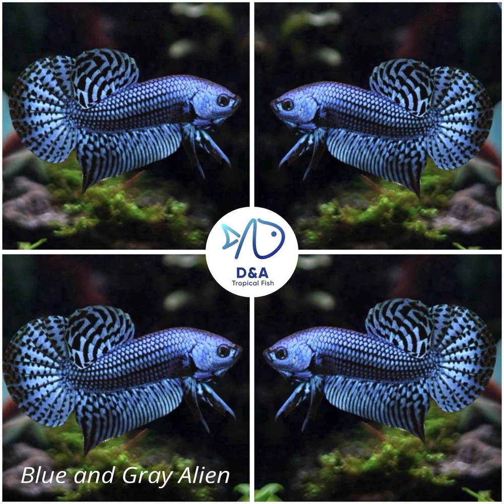 This listing is for a high-quality, live Betta fish of the Alien Blue/Gray variety, shipped from the United States. This peaceful and beginner-friendly species thrives in fresh, tropical water and is a great addition to any home aquarium. The fish is a male and has not been modified in any way.