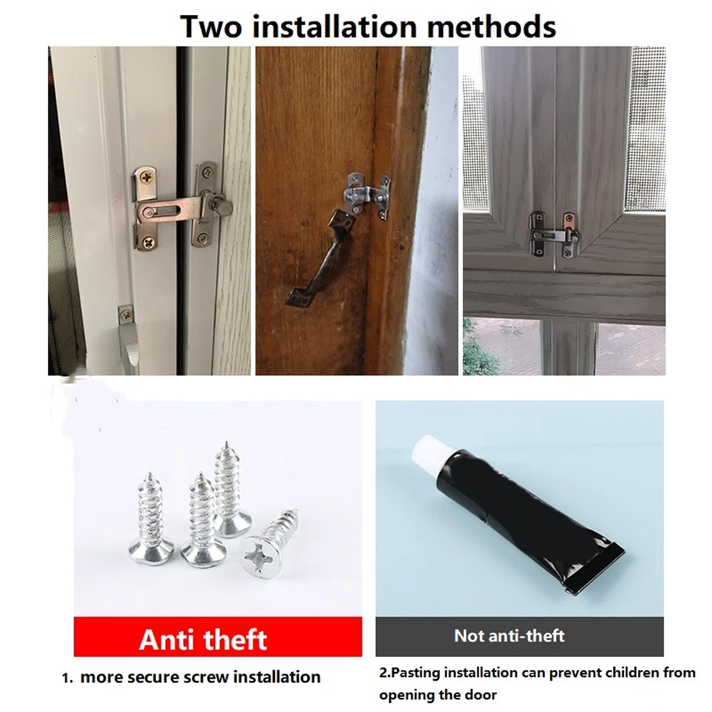 Product Description 1 PC 180/90 Degree Stainless Steel Hook Latch Locks With Screws For Door Window Door Lock 180/90 Degree Barn Bolt Cast Stainless Steel Hook Latch Window Cabinet Locks With Screws Right Angle Sliding Gate Lock Feature: 1. Durable and sturdy cast metal construction ensures long-lasting use 2. Provides added security for your doors and gates with a reliable latch lock 3. Unique texture and design adds a decorative touch to your home or office 4. Suitable for use on toilet doors, sliding gates, and barn doors 5. Easy to install and use with a right angle sliding mechanism Specification: Material: Stainless steel Color: As shown Options: 180 Degree, 90 Degree(optional) Package includes: 1 * Sliding door lock 4 * screw Notice: Due to different computer resolutions, there may be some color distortion Due to different hand measurements, there may be a little error If you have any questions, please feel free to contact us via ebay. We usually respond within 24 hours. Payment Shipping Returns Contact Us We accept all verified payments from ebay. Orders will be shipped after receiving cleared payment. Payment due within 7 days after auction ends and for buy it now listings. We ship most of our orders within 24 hours, and may up to 48 hours for. If you want faster shipping way. Please contact us before making payment. Sometimes due to problems with our transportation company system, your shipping information may be delayed to update. We recommend that you try again after 3-4 days. If you still haven't checked the shipping information, you can contact us by ebay message. Always believe we can figure things out with communication, if it comes to return, the pacakge must be intact and the same as you receive. If you have any questions, please feel free to email our service specialists 24 Hours a Day, 7 Days a Week. We will reply you ASAP. Return/refund is accepted within 30 days after the buyer receives the item. NO exchange will be accepted after 30 days from the date when the item is received. Please contact us first before returning your product!!! If you have any questions, our Customer Service staffs welcome you to email us. We strive to answer all questions and resolve any problems as quickly as possible. You can contact us 7*24, we will reply at the first time, and we will surely solve your problems. Note: 1.We try our best to reply to your emails as soon as possible, however, due to high volume of daily incoming emails and time zone difference, we may not be able to reply your emails immediately. Please allow 1 business days for us to response. If you do not receive any reply from us, please check your email ensuring your mailbox has not reached full size. 2.Due to some ISP SPAM filter settings, you may not be able to receive our replies; if you have problems receiving our emails, you may need to use a different email account to contact us. 3.Please give us the opportunity to resolve any problem. We understand the concerns and frustrations you might have, and will try our best to resolve the issues. Please email us before leaving any negative feedback or open any dispute on PayPal. 4.We care about our valued customers, and will always try to help you. So if you have any problems, please e-mail us immediately. Payment We accept all verified payments from ebay. Orders will be shipped after receiving cleared payment. Payment due within 7 days after auction ends and for buy it now listings. Shipping We ship most of our orders within 24 hours, and may up to 48 hours for. If you want faster shipping way. Please contact us before making payment. Sometimes due to problems with our transportation company system, your shipping information may be delayed to update. We recommend that you try again after 3-4 days. If you still haven't checked the shipping information, you can contact us by ebay message. Returns Always believe we can figure things out with communication, if it comes to return, the pacakge must be intact and the same as you receive. If you have any questions, please feel free to email our service specialists 24 Hours a Day, 7 Days a Week. We will reply you ASAP. Return/refund is accepted within 30 days after the buyer receives the item. NO exchange will be accepted after 30 days from the date when the item is received. Please contact us first before returning your product!!! Contact Us If you have any questions, our Customer Service staffs welcome you to email us. We strive to answer all questions and resolve any problems as quickly as possible. You can contact us 7*24, we will reply at the first time, and we will surely solve your problems. Note: 1.We try our best to reply to your emails as soon as possible, however, due to high volume of daily incoming emails and time zone difference, we may not be able to reply your emails immediately. Please allow 1 business days for us to response. If you do not receive any reply from us, please check your email ensuring your mailbox has not reached full size. 2.Due to some ISP SPAM filter settings, you may not be able to receive our replies; if you have problems receiving our emails, you may need to use a different email account to contact us. 3.Please give us the opportunity to resolve any problem. We understand the concerns and frustrations you might have, and will try our best to resolve the issues. Please email us before leaving any negative feedback or open any dispute on PayPal. 4.We care about our valued customers, and will always try to help you. So if you have any problems, please e-mail us immediately. powered by