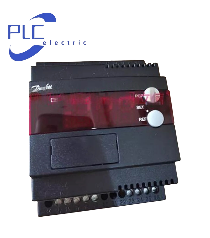 Direct Supply BRAND NEW PARTS Application scenarios : It is suitable for medium and large refrigeration systems, especially for occasions that require strict control of medium temperature (such as warehouse temperature, coolant temperature). It can be used with Danfoss ICS/PM series main valves, CVQ pilot valves or ICM electric valves to achieve precise regulation of evaporation temperature and liquid supply, ensuring that the temperature of the cooled medium remains within the set range. Temperature control accuracy : Adopting advanced PID+PWM (Pulse Width Modulation) control algorithm, the temperature control accuracy can reach ±0.1℃ (under steady-state conditions), which is much higher than conventional controllers. It can effectively reduce the impact of temperature fluctuations on stored items (such as fresh food, medicines). Control modes : Medium temperature priority control : Directly monitor the temperature of the cooled medium (such as warehouse temperature) through Pt1000 or NTC sensors, dynamically adjust the valve opening, and give priority to ensuring the stability of the medium temperature. Evaporation temperature auxiliary adjustment : It can be connected to the evaporator outlet temperature sensor, and perform composite control combined with the medium temperature signal to avoid excessive frosting of the evaporator or liquid carryover in the return gas, and optimize heat exchange efficiency. Multi-stage setting function : Supports presetting multiple sets of temperature parameters according to time or working conditions (such as day/night mode, storage requirements for different batches), and automatically switches control logic to improve energy efficiency. Input and output specifications : Temperature input: 2-3 sensor interfaces (compatible with Pt1000, NTC), used for medium temperature, evaporation temperature, and ambient temperature monitoring respectively. Analog input: 1 channel of 4-20mA signal interface, which can be connected to external pressure sensors or flow sensors to realize multi-parameter linkage control. Output signals: Analog output (0/4-20mA): Directly drives the ICM electric valve with an opening accuracy of 0.1%. Digital output (3 relays, SPST, AC250V/5A): Used to control auxiliary equipment such as solenoid valves, fans, and alarm devices. Protection and alarm functions : Equipped with protection mechanisms such as sensor failure (disconnection, short circuit), over-temperature/low-temperature alarm, and abnormal valve drive. Alarm signals can be output through relays or uploaded via communication interfaces. Supports compressor start-stop interlock control to avoid frequent start-stop or overload of the compressor caused by abnormal temperature. Power supply and environmental parameters : Power supply voltage: AC 24V ±15%, 50/60Hz, power consumption is about 6VA (including valve drive). Operating environment: Temperature -10℃ to +60℃, humidity 10%-90%Rh (no condensation), protection class IP20, suitable for DIN rail mounting in control cabinets (size approximately 140×80×40mm). Communication and configuration : Supports Modbus RTU communication protocol, which can be connected to ADAP-KOOL® systems or third-party monitoring platforms to realize remote parameter setting, data recording and fault diagnosis. Equipped with an LCD display and buttons, it supports on-site viewing of real-time temperature, valve opening and historical alarm records. Parameter settings support password protection to prevent misoperation.
