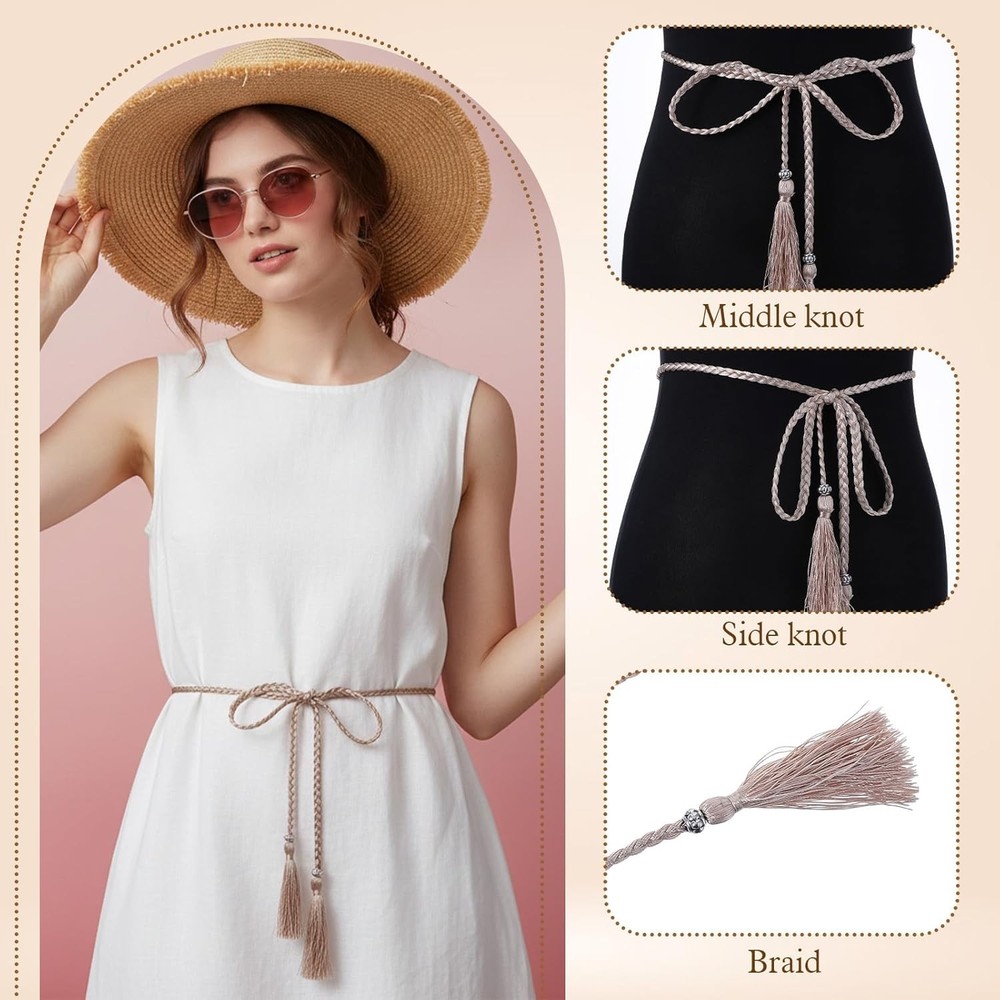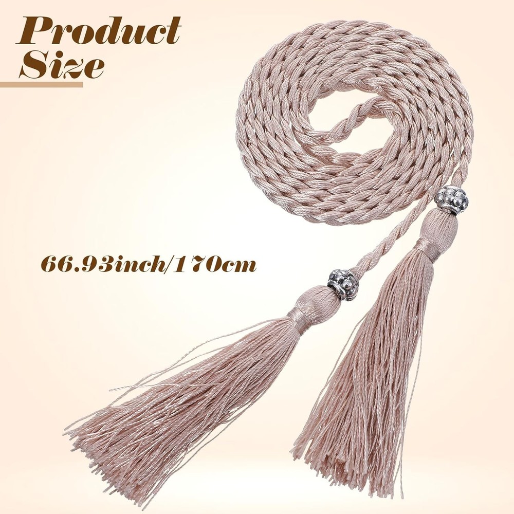 1 PCS Rope Belts Thin Braided Waist Belt Boho String Belt Skinny Woven Rope Tie Belts Long Tassel Trendy Braided Stretch Thin Waist Chain Accessories Decorative for Women Skirt Dress Christmas Party 1 PCS Rope Belts Thin Braided Waist Belt Boho String Belt Skinny Woven Rope Tie Belts Long Tassel Trendy Braided Stretch Thin Waist Chain Accessories Decorative for Women Skirt Dress Christmas Party FREE AND FAST SHIPPING! About this item Rope belt collection: Our rope belt features elegant apricot color , crafted from durable polyester with zinc alloy accents that maintains flexibility without stretching out. This versatile string belt measures 66.93 inches (170 cm), perfect for creating multiple wrapping styles and fitting various body types with comfortable adjustability Stylish braided waist belt design: Experience the bohemian charm of our women long tassel waist belts featuring intricate braided patterns and delicate tassel details. This rope braid belt effortlessly enhances your waistline, creating flattering curves while adding a touch of boho elegance to any outfit, from casual daytime looks to evening ensembles Rope belt jeans function: Transform your favorite denim with this waist rope tie belt that adds instant style to jeans, skirts, and dresses. The adjustable string belt for jeans skirt allows custom fitting while the skinny woven design slides easily through belt loops without bulkiness, making it ideal for both high-waisted and hip-hugging bottoms Versatile rope tie belt applications: This multifunctional skinny woven boho belt serves as the ultimate accessory for dresses, tunics, cardigans, and beach cover-U.S. Create beautiful knots, bows, or simple wraps that highlight your silhouette. The lightweight design (25g) ensures all-day comfort without weighing down your clothing or causing irritation Thoughtful fashion gift: This apricot rope belt makes an exquisite present for fashion-conscious women. Whether for birthdays, holidays, or special occasions, this elegant accessory shows appreciation while helping the recipient elevate their wardrobe with timeless boho-chic style Product We offer a 30-Day Return Policy on items which you are not completely satisfied with. You have the option for a full-refund or an exchange of the item. No returns are available on items shipped outside of the US . Shipping We offer Free Shipping to the US and ship within 2 business days of payment, usually sooner. We use UPS express shipping. That's why your products are usually delivered within 3 days . Contact We try our very best to make sure every customer is completely satisfied. If there's a problem , message us! We're happy to help. 24/7 live chat available.