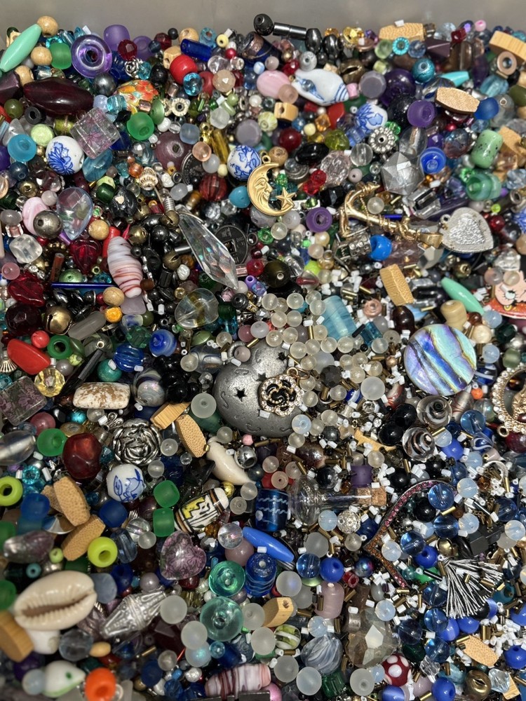 This product is a 1 pound assortment of beads in various colors, all made of metal with an iridescent finish. These beads are perfect for making jewelry and crafts, and also include charms for added creativity and decoration. With a wide range of colors and a metallic finish, these beads provide endless possibilities for creating unique and stylish pieces.