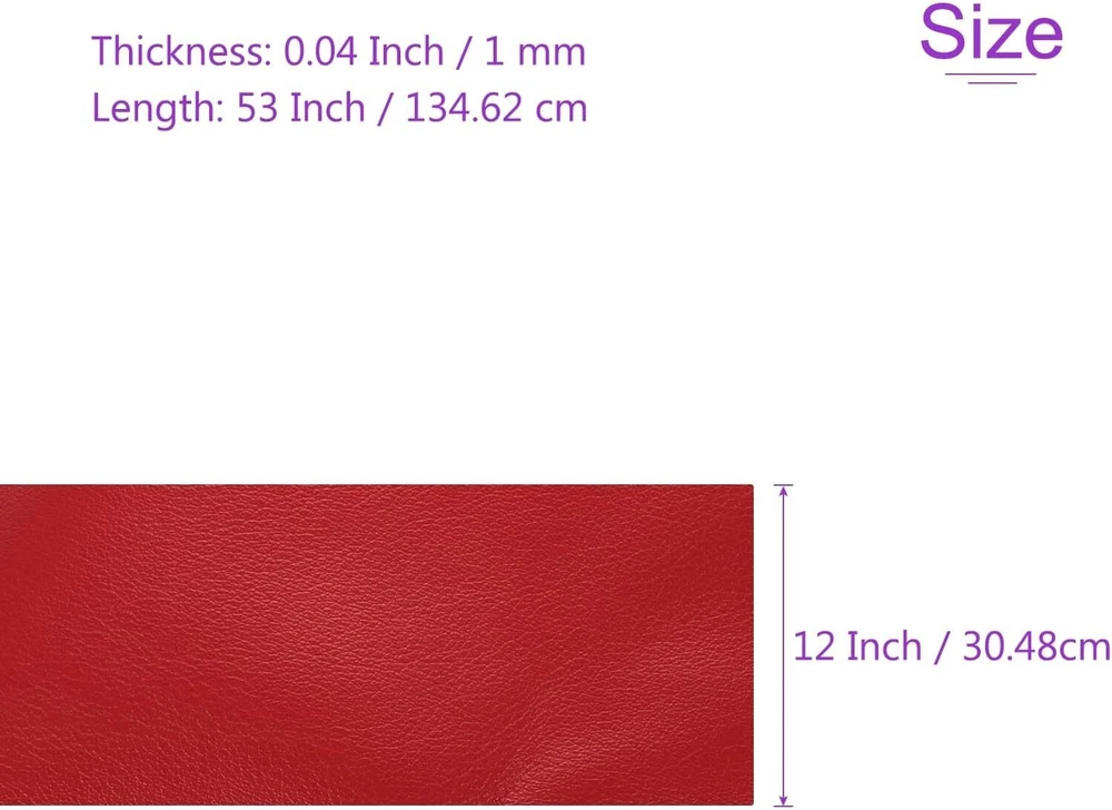 1 Pack 12 Inch X 53 Inch Faux Leather Sheet Furniture Cover Fabric Skin Red PU L This faux leather fabric is versatile and suitable for various applications such as wallets, belts, handbags, and furniture upholstery for both home and commercial use. It can be used in the creation of sofa or seat cushions, headboards, ottomans, bar stools, restaurant furniture, theater seats, auditorium seats, and more. Material: PU Leather; Pattern: Fabric Skin; Color: Red; Size:12 Inch x 53 Inch / 30.48cm x 134.62cm; Thickness: 0.04 Inch / 1 mm; In the package of: 1 Pcs x Faux Leather Strip Made from polyurethane (PU) leather, It features a smooth and pliable texture, making it easy to work with. The fabric is durable, breathable, and comfortable, offering long-lasting performance. It is also resistant to soiling and scratches, and can be easily cleaned with a damp cloth. With its versatility and durability, this faux leather fabric is perfect for DIY enthusiasts and professionals alike. It can be cut without fraying and can be sewn by hand or machine, allowing for customization and ease of use in various projects. Whether it's creating accessories like wallets and belts or re-upholstering furniture, this fabric provides a reliable and stylish solution. If the fabric come with creases, they can be easily removed by using a damp towel to quickly iron the fabric or using a blow dryer for a few minutes. Shipping We offer FREE shipping on all orders! We ship within Three business days of payment, usually sooner. We use a selection of shipping services such as UPS, FedEx, USPS etc. We only ship to the lower 48 states, no APO/FPO addresses or PO Boxes allowed. Local pickups and combined shipping options are not provided at this time. Return You can return a product for up to 30 days from the date you purchased it. Any product you return must be in the same condition you received it and in the original packaging. Please keep the receipt. Customer satisfaction is very important to us. If you have any problem with your order, please contact us and we will do our best to make you satisfied. Contact Us If you have any queries, please contact us via ebay. We usually respond within 24 hours on weekdays. Please visit our eBay store to check out other items for sale! Thank you for shopping at our store.
