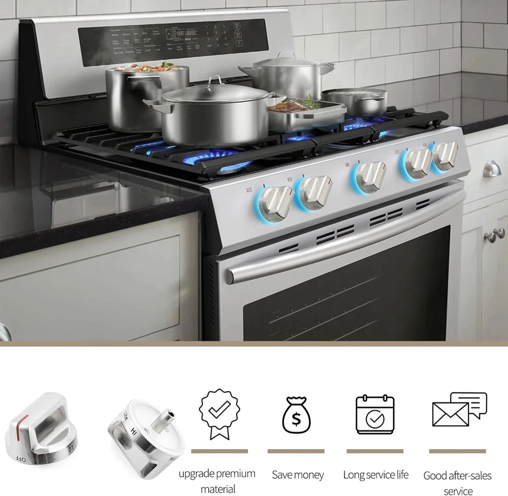 5 P Stainless Steel Look Control Knob Kits For GE Gas Range Stove WB03X24818*&*