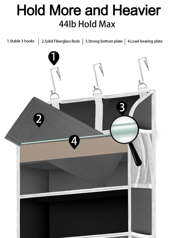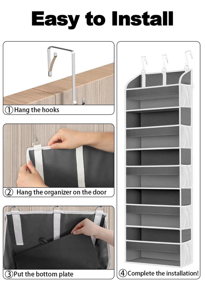 animal storage,baby essentials,Newborn Essentials Must Haves,baby must haves,baby essentials,hanging closet organizer,craft organizers and storage,purse organizer,towel storage,yarn storage,back of door organizer,small space organizer,over the door organizer,organizers for bedroom,over door organizer,over the door organizer,bathroom storage organizer,over the door storage organizer,diaper organizer,bedroom organization,door organizer,nursery organization,college dorm essentials Large Capacity and Space Saver - The over the door storage organizer features 5 large pockets (each 15" L x 6.5" W x 6.5" H) and 10 mesh pockets on the sides. It's perfect for maximizing storage space in bedrooms, bathrooms, and dorm rooms. With a 44 lbs weight capacity, this door organizer is a versatile space-saving solution for your home. Newborn Baby Essentials Organizer - The door hanging organizer is crafted from breathable, non-woven fabric that is odorless, non-, and safe for your baby. This multi-functional storage solution can be used for animal storage, organizing baby clothes, diapers, , and baby , making nursery organization a breeze. It's the perfect addition to keep your baby's essentials organized! Simple Installation and Tool-- This upgraded over door organizer features 3 sturdy metal hooks and reinforced , ensuring your items stay securely in place without tilting. Designed to fit most doors without hindering their closing (with a door gap within 1.65 inches), it's an ideal solution for closet organizers and storage, making room organization a breeze. Versatile Organization for Any Space - Discover a multitude of uses for this door organizer in various rooms of your home. Perfect for bedroom storage, bathroom essentials, dorm room clutter, and nursery organizers and storage, this back of door organizer offers a clear view of contents through its transparent front pockets, making it easy to find what you need at a glance. Master Organization and Storage - We're confident you'll love our products, but if you have any questions or concerns, don't hesitate to reach out. We're committed to providing a prompt and satisfactory response to any inquiries or feedback within 24 hours, even after your purchase. Your satisfaction is our top priority.