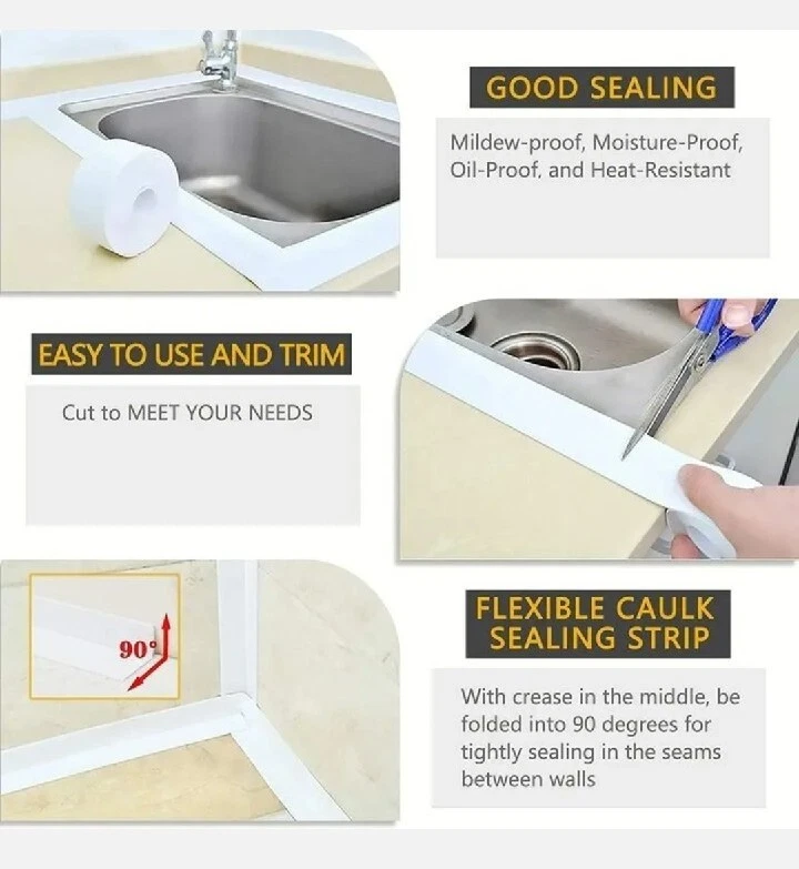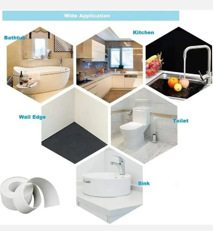 Introducing a brand new product that will revolutionize the way you seal your kitchen and bathroom! This self-adhesive caulk strip tape is made of high-quality PVC material, making it waterproof and perfect for any type of strip. Measuring at 3 feet in length, this caulk strip tape comes in a clean and sleek white color that will blend in perfectly with your bathroom or kitchen decor. Whether you're looking to seal your bathtub or kitchen sink, this caulk strip tape will do the job without any hassle. It's easy to install and will provide a long-lasting seal, ensuring that your kitchen and bathroom stays dry and free from any water damage. Don't miss out on this amazing product that will make your life easier, order now!