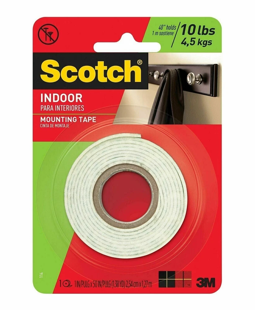 1 Packs 3M Scotch Indoor Mounting Tape Holds 10 lb Each Roll 1" x 50" (1.38 yd)