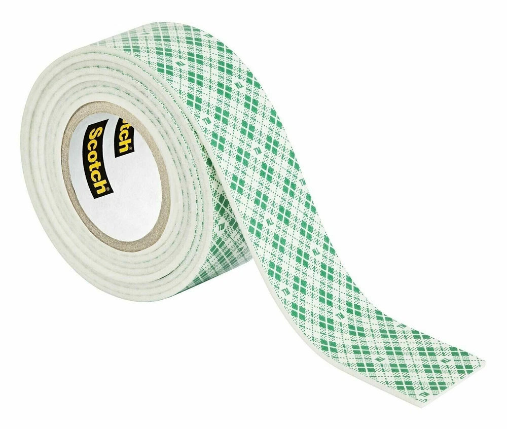 You are purchasing 1 packs of 3M Scotch Indoor Mounting Tape 40" Of Tape Holds 10 lb (4.5 Kg) Roll 1" x 50" (1.38 yd), White & Green 1 Roll/Pack · Each pack contains one roll of tape 1"x 50" (1.38 yd) · Indoor permanent mounting tape · Ideal for finished and painted surfaces, metals, tiles and other hard and smooth surfaces · This is a permanent tape and may cause damage if removed. Do not use it on delicate or curved surfaces · Entire tape surface must adhere completely to both sides