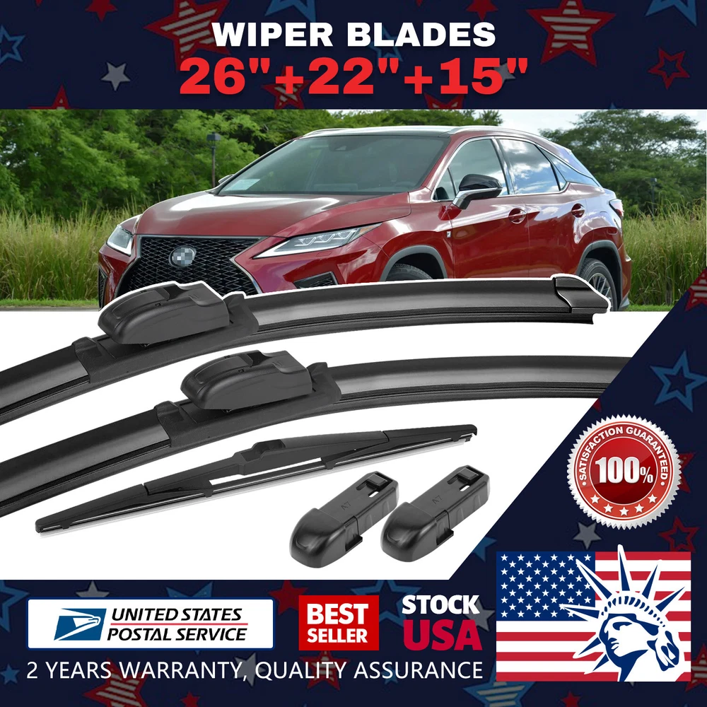 Characteristics of MGT wipers 【Heat and cold resistance】: The wiper can work in high and low temperature environments, ensuring the stability and reliability of the wiping function 【Acid and alkali resistance, corrosion resistance】: The wiper material has good acid and alkali resistance, which can resist the erosion of chemical substances in rain, snow, and dust on the windshield, extending the service life of the wiper 【Fit to the windshield】: A good wiper can tightly fit the windshield, making the wiping effect better. 【Reducing motor burden】: When designing wipers, it is usually considered to reduce the load on the motor, making wiping smoother. Maitisouth Best choice of motor parts 1 Pair 26''+22'' & 15'' Rear Windshield Wiper Blades Set All Season Premium Characteristics of MGT wipers 【Heat and cold resistance】 : The wiper can work in high and low temperature environments, ensuring the stability and reliability of the wiping function 【Acid and alkali resistance, corrosion resistance】 : The wiper material has good acid and alkali resistance, which can resist the erosion of chemical substances in rain, snow, and dust on the windshield, extending the service life of the wiper 【Fit to the windshield】 : A good wiper can tightly fit the windshield, making the wiping effect better. 【Reducing motor burden】 : When designing wipers, it is usually considered to reduce the load on the motor, making wiping smoother. 【Low noise】 : The wiper produces low noise during operation and has less interference with the driver. 【Strong water repellency】 : The wiper can effectively remove rainwater from the windshield and maintain a clear driving view. 【Soft and non scratch glass】 : The wiper blade material is soft and will not scratch the windshield, thus protecting the windshield from damage. Description: ➥ 100% Brand New,never been use ➥ 100% fitment guaranteed ➥ Meets or exceeds OEM safety and durability standards ➥ Delivers smooth, quiet, clean, smear free wiping ➥ Wiping Durability: 1.5 Million Times of Wiping ➥ The bracketless design offers better resistance to ice and snow build-up ➥ The aerodynamic design creates down force preventing blade lift-off ➥ The improved flexible spine design insures maximum screen contact ➥ Temperature Tolerance: +158F to -40F (+70C to -40C) ➥ They are made with premium quality rubber with DuPont coating that offer superior wiping performance and have a much longer lifespan than the conventional rubber type Package includes: ★Driver Side: one 26" wiper blade ★Passenger Side: one 22" wiper blade ★Rear Side: one 15" wiper blade (Only Fit For U/J Hook Wiper Arm) For Year and Model, Please Check Compatibility Fitment: ▶Lexus RX330 2004-2022 ▶Lexus RX350 2004-2015 ▶Lexus RX400h 2004-2022 ▶Lexus RX450h 2004-2022 How to install: ⭐ Step 1: Park and prepare Park the vehicle in a safe location and determine if your car has a wiper repair mode. If so, you need to activate the wiper repair mode to keep the wiper arm in a more easily replaceable position. Purchase a new wiper with the appropriate model according to the wiper interface type, and prepare a clean cloth or towel. ⭐ Step 2: Remove the old wiper Remove the old wiper according to the corresponding method based on the wiper interface type. For example, for a U-shaped interface, simply press the buckle and pull out the wiper. ⭐ Step 3: Clean the wiper arm and windshield Before replacing the new wiper, wipe the wiper arm and windshield with a clean cloth to ensure that there is no dust or impurities. ⭐ Step 4: Install a new wiper Align the interface of the wiper with the interface of the wiper arm, and then install it in reverse steps to ensure a secure installation without looseness. ⭐ Step 5: Inspection and Testing Finally, place the wiper arm and start the vehicle to test whether the new wiper is working properly. Ensure good wiping effect and no abnormal noise. Note: Please make sure it is suitable for your car before purchase. Please feel free to contact us if you have any questions. We have more models and sizes of wipers, please come to the store to choose from Wish you have a good shopping time~ Item Specifics Brand MGT Position Windshield Type Wiper Blade Number of Pieces 3 Placement on Vehicle Front left & Front right & Rear Size 26in & 22in & 15in Features Wiper Blade is Designed for Easy DIY Installation Features 2 Over 1500000 cycles of wiping !!! Features 3 Good Wiping Performance even at Higher Speeds Model Wiper Blade Material Rubber/ABS Items Included Set of 26"&22"&15" Wiper Blades Compatible Wiper Arm U/J-hook Arm Manufacturer Warranty 2 Years Model 1 For Lexus RX330 2004-2022 Model 2 For Lexus RX350 2004-2015 Model 3 For Lexus RX400h 2004-2022 Model 4 For Lexus RX450h 2004-2022 OE/OEM Part Number Wiper Blade Manufacturer Part Number Wiper Blades 26'' 22'' 15'' Payment ✎ 1. It will be much appreciated that you finish your payment asap or it will make UPI (unpaid item case) on your account leading to be suspended or restricted by eBay when those UPI cases carry over to certain amount. ✎ 2. Any problems please contact us for more details. Shipping ✌ 1. All items will be shipped to buyer's ebay address. ✌ 2. All items will be shipped within 24-48 working hours upon receipt of payment, and multiple items will be combined shipping. ✌ 3. In most cases, delivery takes around 3-5 business days, it's highly depended on the efficiency of the shpping carrier. If your item doesn't arrive on time, please contact us immediately for further assistance. Please note there is no local pickup service available. Returns ✎ If you are not 100% satisfied with your purchase, you can return the product and get a full refund or exchange the product for another one. Please Note: ✎ Any product you return must be in the same condition you received it and in the original packaging. Contact Us ✎ 1. We care about our valued buyers, if yo