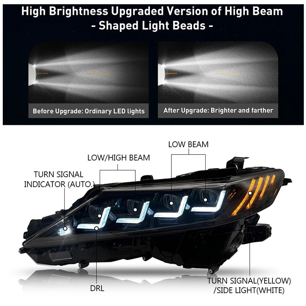 LED Headlight Assembly For 2018-2024 Toyota Camry Sequential Animation Lamp Fitment: For Toyota Camry SE/LE/TRD/XSE/XLE 2018-2024 ( Professional Installation is Highly Recommended ) ✅【Fitment】 Compatible with Toyota Camry 8th gen LE/SE/XLE/XSE/TRD 2018-2024 (OEM Part Number: 81150-06C20, 81110-06F60). Package includes complete set of headlights, one for each side. ✅【Sequential turning light】 The dynamic turn signal feature creates a flowing light pattern that catches the eye of other drivers, increasing visibility and safety. It adds a touch of sophistication to the vehicle, enhancing its overall aesthetics. ✅【Full LED headlights】 It provide brighter and clearer illumination, improving visibility and safety on the road. LED technology consumes less power compared to traditional headlights, resulting in lower fuel consumption and extended battery life. ✅【Dynamic head lights】The startup sequence creates a visually appealing light pattern that adds a high-tech and futuristic look to the vehicle. Seamlessly integrates into the startup sequence of the headlights, offering a smooth and cohesive transition that enhances the overall user experience. ✅【All-weather performance】Our front lamps pass the IP67 test, dust and water resistance rating allows the headlight assembly to perform consistently well in challenging weather conditions, including heavy rain, snow, and dusty environments. ✅【Plug & play】 LED headlights customized according to the original vehicle, perfectly fit your car, no modification needed. Once plugged in, the headlight assembly is ready for immediate use, allowing customers to enjoy the enhanced lighting performance without any delays. (Contact us for the instructions if not include.) ✅【Warranty】 With 3 Years warranty period, and comes with a risk-free 100% product quality and after-sales service guarantee. please feel free to contact us, if you meet any problem while using or installing, we will reply you within 24 hours. Note: Please confirm whether this car-lamps can fit your car before you purchase, if you are not sure, please contact us. Package includes: 1 Pair (Driver Side + Passenger Side) Headlight Assembly Set (Including some installation accessories) Features: Brand :TT-ABC Condition: 100% brand new Type: LED Headlight Assembly Material:High quality ABS Plastic+PC+PMMA Lighting Technology: LED Warranty:3 Year Function: Low/High Beam+DRL/Running Light+Turn Signal Start up: There are a few seconds of animation Superior, Lasting Visibility State-of-the-art design guarantees performancethat delivers excellent visibility. Made by a certified manufacturer using materials that meet strict OEM requirements. Using your factory supplied connector/harness will avoid cutting or modifying any wires.Benefits of LED making you safer on the road for other road users to see. The items have the same connections and wires with the original headlights. Easy to install still professional installation is recommended. Features:DOT-Certified, Durable, Easy Installation, High Quality, OE-Certified, SAE-Certified, Sealed Assembly, Waterproof, ISO-Certified, Dustproof and Sturdy Note: Please confirm the year of your car/light shape/ plug of your original lights whether these information as same as our lights, if you can't confirm it, please contact us. Please double check shipping address, We are not responsible for incorrect or undeliverable addresses.You can't change your shipping address after placing an order. Please Using your factory supplied connector/harness will avoid cutting or modifying any wires. We only provide electronic invoice "packing slip", if you need it, please note or contact us when you place an order. We will open the box and inspect the returned item to see if it is intact and the correct item before refunding you. If there is a problem with the product, please feel free to contact us, we can help you solve it as soon as quickly! Payment Delivery details After sales Contact us For tips Payment We only accept payment via eBay. Please make sure your eBay address is correct before you pay. Insufficient information will delay the order process so please read the invoice carefully during checkout. Delivery details To United States: 3-6 business days. Package will be sent out within 24 hours after the pament is received. Pick-up is unsupported servise. We will not be responsible for any delivery failure due to unclear address. Delivery is not available on weekends, public holidays or after business hours. After sales After-sale If it happens that the lights get moisture after you install them on your car, it would be normal for first time using. You just need to keep using for a period of days, the moisture will disappear. because there is inner air cycling in the lights as we design. As for headlights, you can also open the cover of low/high beam so that the moisture will out more quickly. If the moisture still exist, please feel free to send us message for help, we will try our best to help you. After you install, if you find that there have function does not work, please check if the harness is connected correctly, and exchange the left and right , If it still does not work, please rember take some photos or videos, please feel free to contact us. We will appreciate if you can takes some pictures or videos about your problem, and also send us the barcode of the products(every product we sell has a barcode on the backside of the light and outside of the package, it's very important for us to find the problem) If you open a request or case optionaly before communication, it would be hard for us to serve you. Contact us If you have any problem, please contact us or leave message for us for free. We will reply at once when convient. Don't worry, we always here waiting for your and like to help you. For tips There are some tips for you: 1. If There are any problems with the product, please contact with us before leaving any feedback or