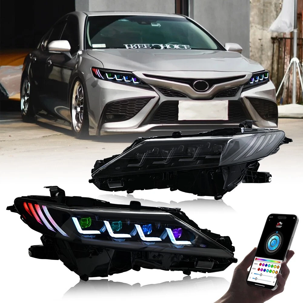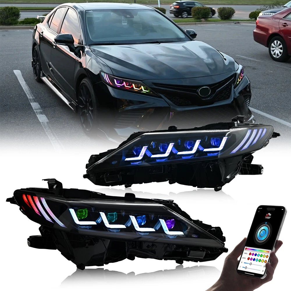 1 Pair RGB LED Headlight For Toyota Camry 2018-2024 DRL LED Projector Head Lamps