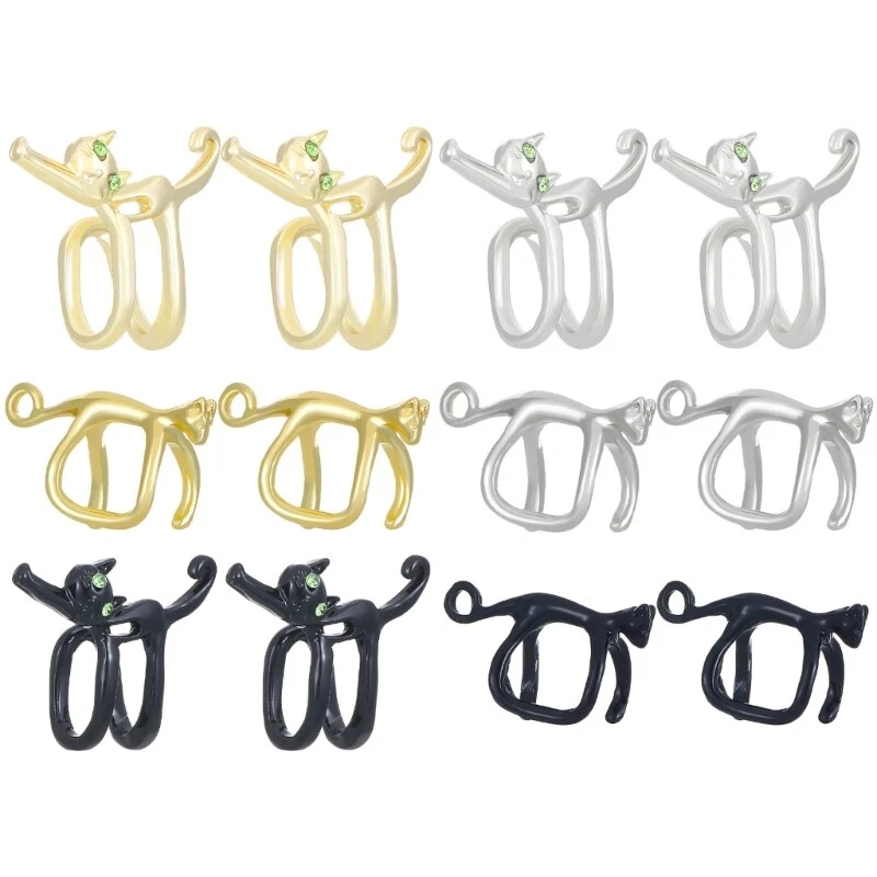 1 Pair Unique Cats Earrings Green Eyes Cats Ear Clip Nonslip Fashion Ear Jewelry