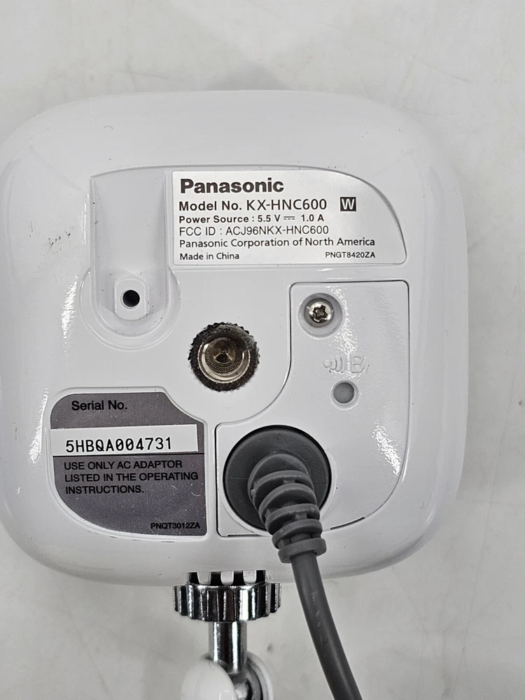 Model: HNC600 UPC: 885170197268 Smart Home Protocol: Wi-Fi Location: Outdoor Only Manufacturer Warranty: See Item Description Number of Channels: 1 Year Manufactured: 2015 gtin13: 885170197268 Compatible Brand: Panasonic MPN: KX-HNC600W Brand: Panasonic Surveillance Technology: IP/Network Power: 600 W Type: Surveillance Camera Country/Region of Manufacture: China Features: Add-On Camera, Bracket, Night Vision, Outdoor/Weatherproof, Waterproof, Wi-Fi Color: White/Black Connectivity: Wi-Fi, Wireless Power Source: Hardwired, Wall Plug-In