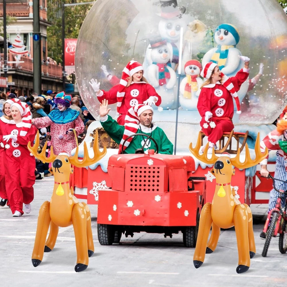 1 Pcs 5.52 FT Giant Christmas Reindeer Animals Deer Inflatable Christmas Standing Reindeer Blow up Decorations for Holiday Outdoor Yard Lawn Gift Package Content: each package includes 1 Christmas deer inflatable animals for party safari; The nice set allows for versatile placement, be it at the entrance of your home or flanking your Christmas tree, amplifying the holiday spirit in every corner Quality Material for Long Term Use: our Christmas giant reindeer inflatable is made from quality PVC material, ensuring durability and longevity; The material is resistant to wear and tear, providing you with a Christmas decoration that will add cheer to your holidays for many seasons to come Impressive Sizing for Maximum Impact: with dimensions reaching about 63 x 39 inches/ 1.6 x 1 meter, this Christmas inflatable reindeer is sure to make a striking statement; Its eye catching size helps to enhance your Christmas decor, creating an engaging and festive atmosphere Stylish Christmas Deer Design: featuring a delightful Christmas deer style, these Christmas reindeer inflatable decorations seamlessly blend into any holiday decor; The charming design is sure to create Christmas spirit, making them a favorite amongst guests and family members Easy to Use and Inflate: the usage method of our Christmas inflatable decorations is straightforward; Just remove the plug of the inflation port, use an air pump to inflate it to the appropriate size, and finally put the plug back; Within a few minutes, your festive decor is ready to impress