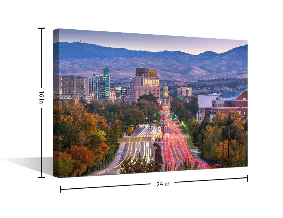 Menu 1. We require immediate payment. 2. We currently accept payment via eBay managed payments only. 3. Once payment is cleared, we will dispatch your shipment within 1-3 business days. Please refer to the "Shipping" tab for more information regarding shipping speed to your destination. 1 Pieces US City Skylines Wall Decor Painting Canvas Wall Art Boise, Idaho, USA Downtown Posters Modern Home Decor Print for Home Living Room Dining Room Framed Ready to Hang 16"Wx24"H Product description Canvas Wall Art: 1 Piece wall art for living room come with a standard size 16X24" (40x60cm), stretched and framed pretty, light and ready to hang for home decor. Artwork ready to hang: 1 piece Canvas wall art was stretched by dry timber frame, and the paintings are light weight. Each panel also has hook mounted and traceless nails, can help you hung easily on the wall. Excellent quality: The canvas of wall art has no smell of oil painting, and has the highest durability. you can easy to clean with wet rags. Adopt advanced and excellent canvas printing technology can ensure that the image is clear and realistic. Home decor: A perfect wall decorations for living room, bedroom, kitchen, office, Hotel, dining room, office, bathroom. Canvas wall art as a gift for friends, family and lovers on Christmas, National day, Thanksgiving day, Mother's day, Father's day, Children's day, Easter, All Saints' Day, Halloween. Customer service: All canvas wall Art were strict quality control before leaving the factory. If you received any questions about the items, please contact us immediately. The colors may be slightly different from the screen display of different brands. PLEASE MESSAGE US IF YOU HAVE ANY OTHER QUESTIONS, AND MANY THANKS FOR READING ALL OF THIS. Copyright ©#. All Rights Reserved.