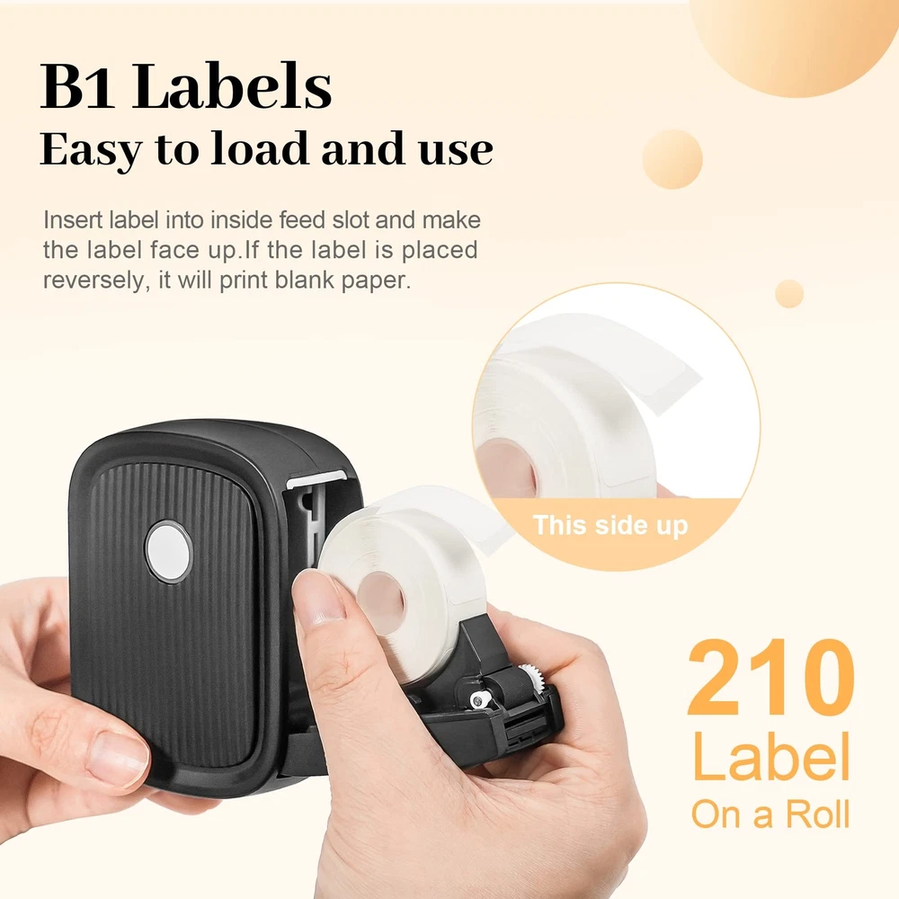 【B1 Label Maker Tape】The thermal labels is compatible with B1 label maker. 1 Roll of 210PCS Labels, with label size of ecah tape in 14mm x 30mm (0.55x1.18 Inch). 【Premium Quality Labels】 B1 labels are specially made of high-quality paper, waterproof and wear-resistant. It prints clear has good stickiness, and can be firmly adhered to most surfaces, such as kraft paper, PVC, wood, glass, boxes, metal, and envelopes. The sticker labels come off without residue if you need to remove them. 【Thermal Labels, Smudge free】label maker tape print with direct thermal printing technology without ink or toner required, print clean and don't smear. 【All-Purpose Labels, Widely Used】The sticker labels are suitable for use in your home and office, great for home storage, office work, school supplies, price tags, name tags, address labels, food labels, and expiration date reminders. 【Note:】Can not directly fit for Niimbot label maker. It's compatible with the B1 label maker or similar label makers without embedded RFID identification.