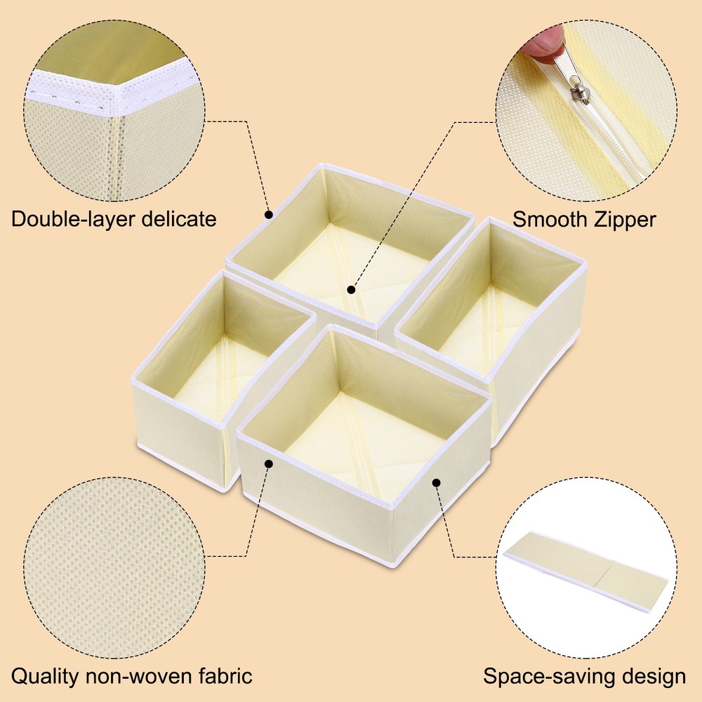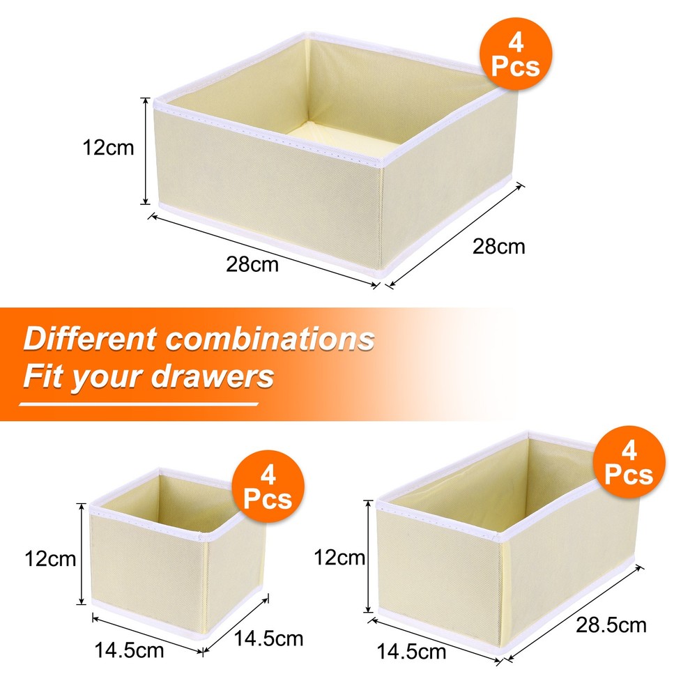 1 Set 12 Slot Foldable Fabric Socks Underwear Dividers Storage Box, Beige