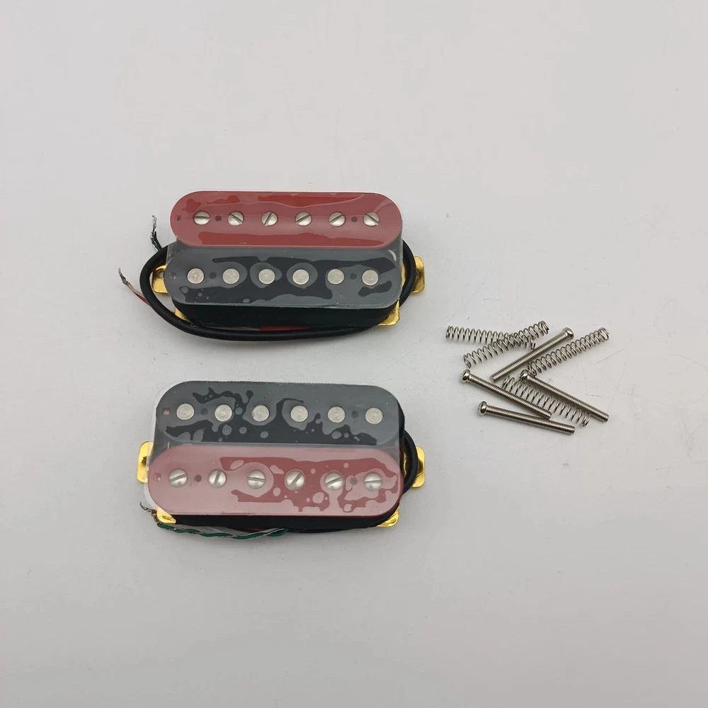Product Introduction: Item Model :Custom Black Red Humbucker Pickups Magnet:Classic Ceramics Magnets Scope of use :Suitable for gibson epiphone electric guitars DC Resistance (approx.) : Neck 7.69 K ; Bridge: 15.15 K (K resistance is for reference only, which will change as the temperature changes.) Wiring Harness: 2 × A500K Pots; 2 × B500K Pots 1 × Epiphone Outer Jack 1 × Epiphone 3 Way Switch Weight :350g / set Cable: 4C Braided Shield for humbucker pickup Accessories: Springs+ Screws Wiring Harness include: 2 × A500K Pots 2 × B500K Pots 1 × Epiphone Outer Jack 1 × Epiphone 3 Way Switch Note: Transparent plate not included in the wiring when shipped