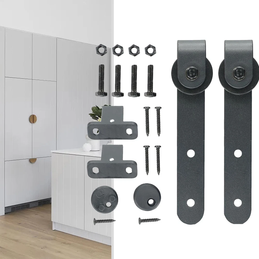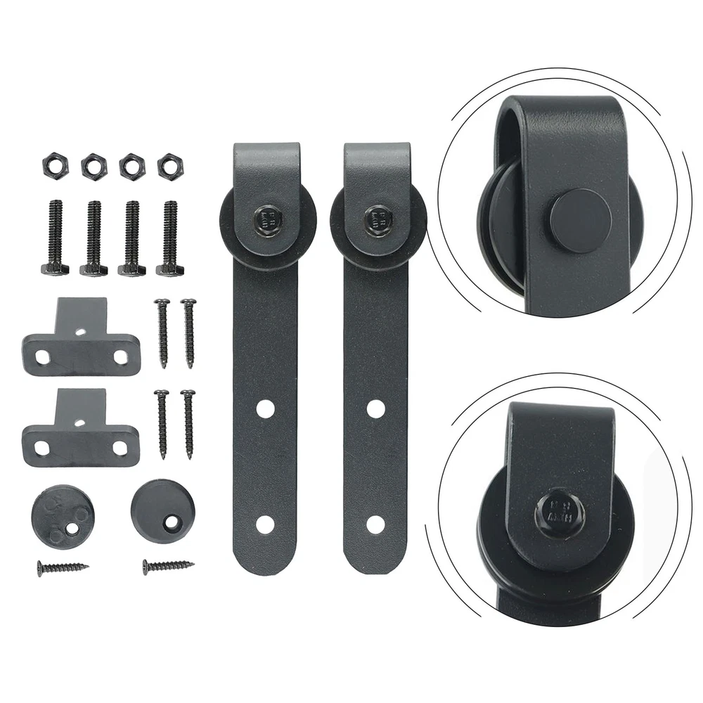 Product Description Features: * brand new and high quality *Made of high quality material, and practical to use *Rugged and: powder coated, iron structure *Save space: make your room look more spacious *Suitable for cabinets, etc. *Sliding wheel: for smooth and silent *Not slot ground guide: clamp at the middle of door or at the bottom of the door *Socket: link rail and cabinet, with screws in the middle *Retainer: Installed on both ends of the track to prevent the pulley from moving out of the track *Easy to match: Suitable for your home style, whether it is for American Nordic Japanese style or rustic modern minimalist style Specifications: Material: Carbon Steel : Black Powder Coated Door weight capacity: 70lb Door Thickness: 0.63'' to 0.78'' Package Contents: 2x Roller 2x End 2x Floor Guide 4x Screws with nuts Note: . The real color of the item may be slightly different from the pictures shown on website caused by many factors such as brightness of your monitor and light brightness. 2. Please allow slight manual measurement deviation for the data. Payment Payment must be completed within 5 days. If you have any problems about payment, please contact us via ebay message. Delivery details We only ship to confirmed ebay Order addresses. Please comfirm that your Order address is in line with your shipping address. Please kindly note that the c ombined shipping is not provided because the shipping fee is calculated by weight. Also, the each additional item means exactly the the same color and size. It takes about 7 -15 working days to US; about 10-30 working days to other countries. Transit time may be a little delayed because of the bad weather and customs inspection . If you do not receive your item within 30 working days since payment finished, please contact us immediately for further assistance. Contact us We strive for 100% customer satisfaction! Positive Feedback is very important to us. If you have any questions, p lease feel free to contact us via "Ask seller a question" . We will reply your email within 24 working hours.