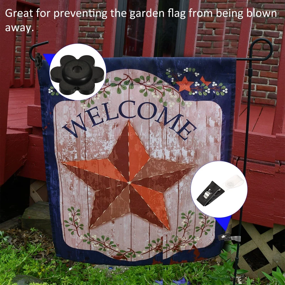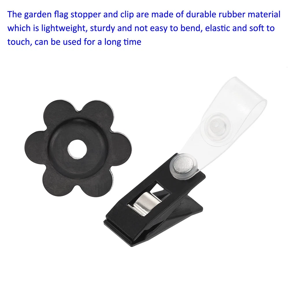 APPLICATION RANGE: The garden flag stopper and anti-wind clip kit are used to prevent flags from falling off the stand, keeping your garden flag in place out of doors. DURABLE DESIGN: The garden flag stopper and clip are made of durable rubber material which is lightweight, sturdy and not easy to bend, elastic and soft to touch, can be used for a long time PACKAGE INCLUDE: 3 Pack of Black Garden Flag Stoppers, which overall size is 31 mm x 5.6 mm / 1.28" x 0.22" (Max Outer Dia*Hole Dia); 3 Pack of Clip, which overall size is 28 mm x 13 mm / 1.1" x 0.51" (L*W) NEED ATTENTION: Please confirm the diameter of the stand rod and select the right size of the stopper. APPLICATION RANGE: The garden flag stopper and anti-wind clip kit are used to prevent flags from falling off the stand, keeping your garden flag in place out of doors. DURABLE DESIGN: The garden flag stopper and clip are made of durable rubber material which is lightweight, sturdy and not easy to bend, elastic and soft to touch, can be used for a long time FUNCTIONAL TOOLS: They can hold your flags firmly which are helpful tools during your garden activities. PACKAGE INCLUDE: 3 Pack of Black Garden Flag Stoppers, which overall size is 31 mm x 5.6 mm / 1.28" x 0.22" (Max Outer Dia*Hole Dia); 3 Pack of Clip, which overall size is 28 mm x 13 mm / 1.1" x 0.51" (L*W) NEED ATTENTION: Please confirm the diameter of the stand rod and select the right size of the stopper.