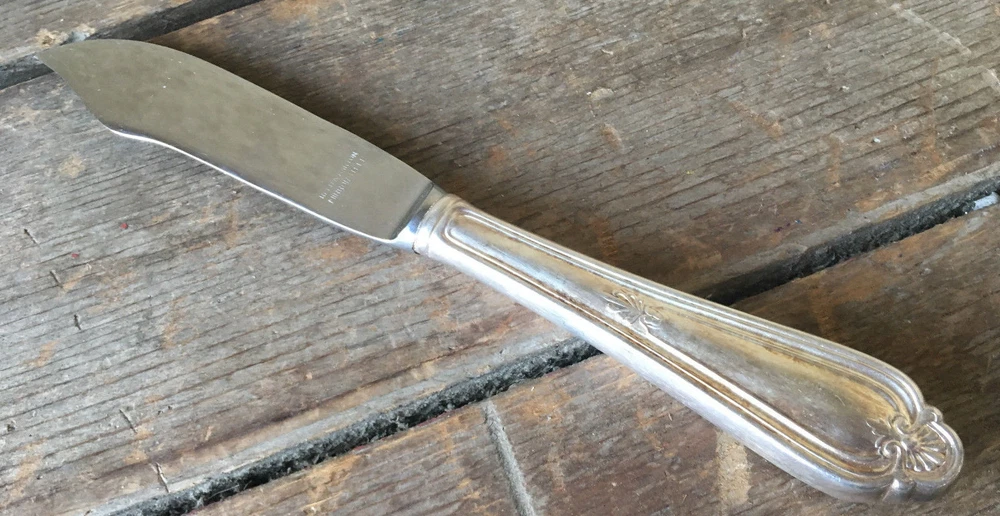 1 Solid Fish Knife Reed Barton Corsican 1926 Plumes Silverplate 82108 Silver Plate •Piece: Solid Fish Knife •Size: 8 1/8" •Quantity: 1 •Manufacturer: Reed & Barton •Maker's Mark/Signature: Reed Barton Mirrorstele on the Blade •Pattern: Corsican •Color: Silver Plate Silverplate •Country of Origin: ? •Material: Silverplate Silver Plate •Condition: Good to Very Good. May have some minor wear. Needs polishing. •Pattern Attributes: Plumes •Style Number: 1926 82108 RPSCOR •Years Manufactured: 1926 and most likely discontinued Shelf: i