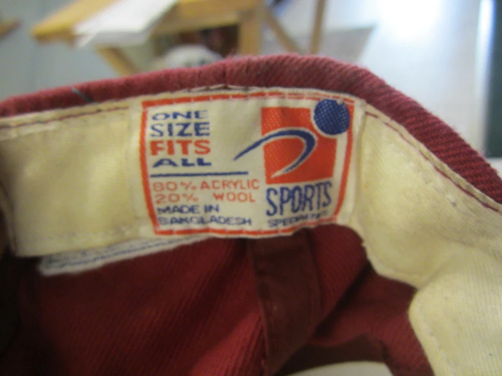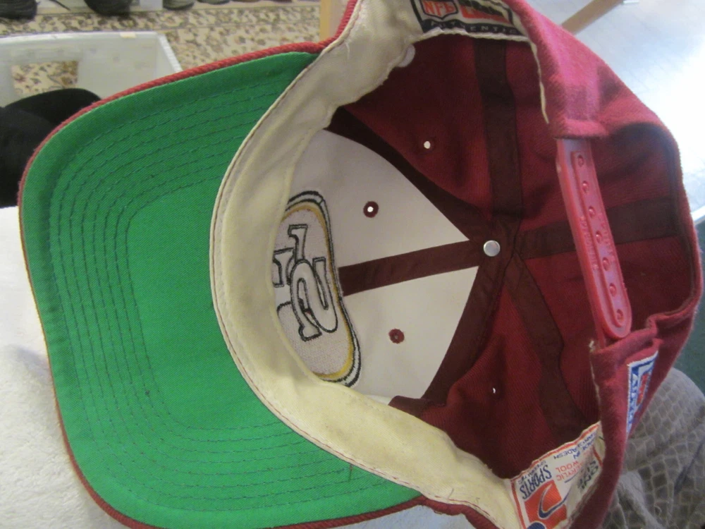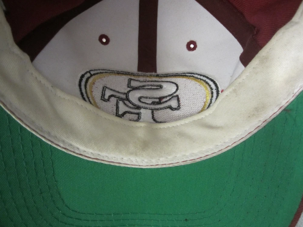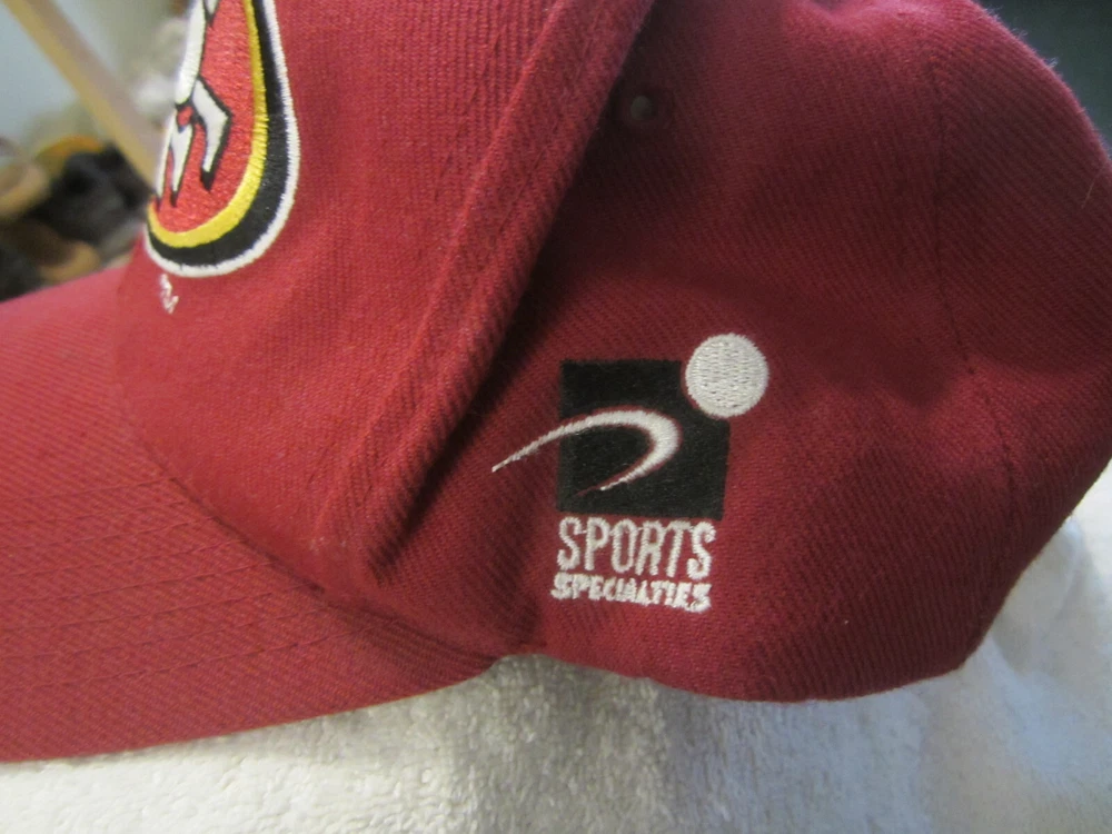 Department: Unisex Adults Theme: Sports Style: Snapback Character: 49ers Material: Acrylic & Wool Fabric Type: Twill Color: Maroon Features: Adjustable Pattern: Solid UPC: does not apply gtin13: does not apply Brand: Sports Specialties Vintage: Yes Size: Adjustable Occasion: Casual Seller Notes: “Has some dirt and use wear. Very usable shape. uncleaned. See pics for condition.” Country/Region of Manufacture: Bangladesh