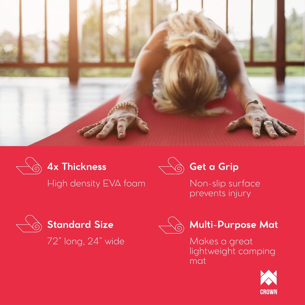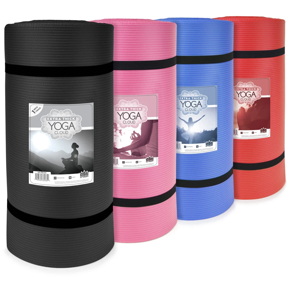 Practice on Cloud Nine - Our most luxurious yoga mats for home workout, the Yoga Cloud is a 1 inch thick yoga mat we designed for those looking for a softer, more cushioned alternative to average thin yoga mats Yoga & Much More - Our satisfied customers have reported dozens of use cases: Yoga Clouds are great for yoga and Pilates, as a home wrestling mat, weightlifting mat, and for other floor exercises that can be tough on joints. They also make a comfortable, lightweight camping mattress pad for backpackers Extra Thick Workout Mat - Thin mats and hard floors can be tough on elbows, knees, and other joints. Our 1-inch thick high-density foam is 4 times thicker than traditional yoga mats, adding vital cushion and support. In addition, we've designed no-slip ridges into the foam surface to help keep you safer and more secure while moving and posing Good to Go - The Yoga Cloud measures a standard 72" long and 24" wide, but rolls down to just about 9 inches in diameter and weighs a little over 4 pounds. A handy adjustable carry strap is included Why You'll Love It - Exercising on surfaces with a high level of shock absorption is vitally important for the health of your joints. Using a high-density mat during your workout provides extra cushion to your hands, wrists, elbows, knees, hips and back that is not only great for safely strengthening weak joints, but also protecting against future injuries and mitigating common pains