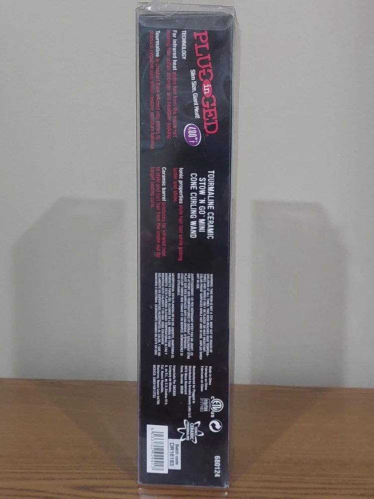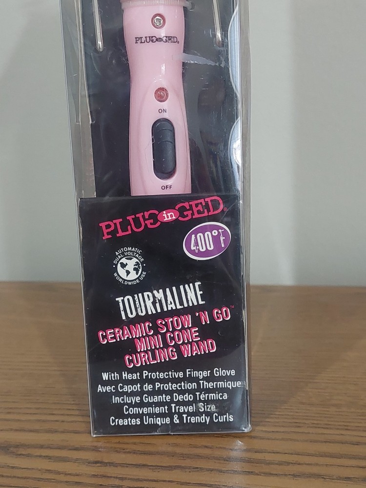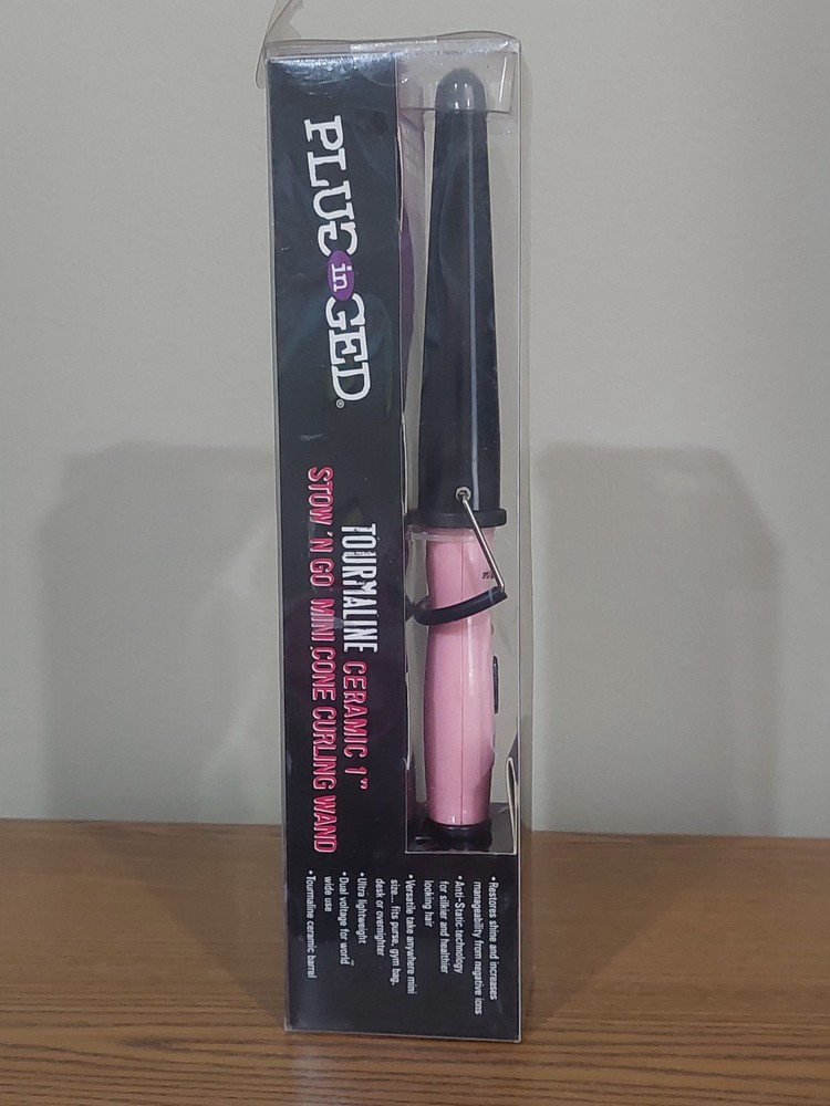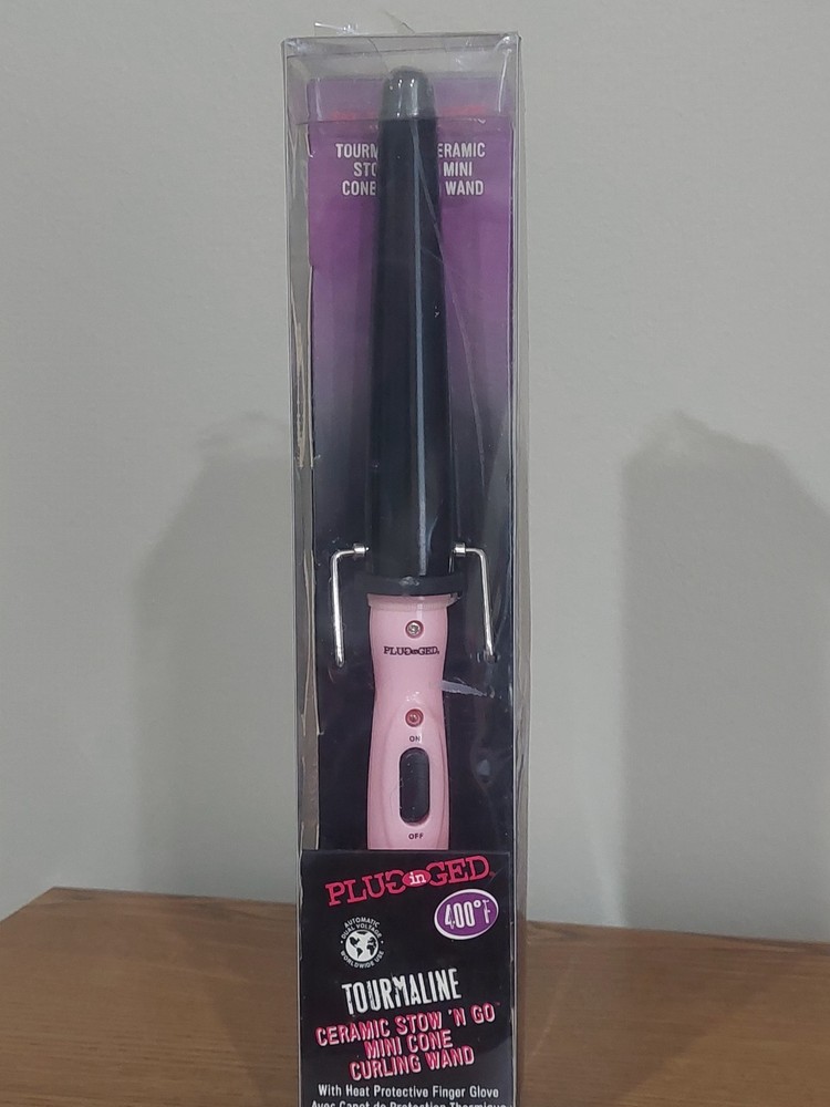 Plugged-In 1" Tourmaline Ceramic Stow 'n Go Mini Cone Curling Wand NEW in Box.