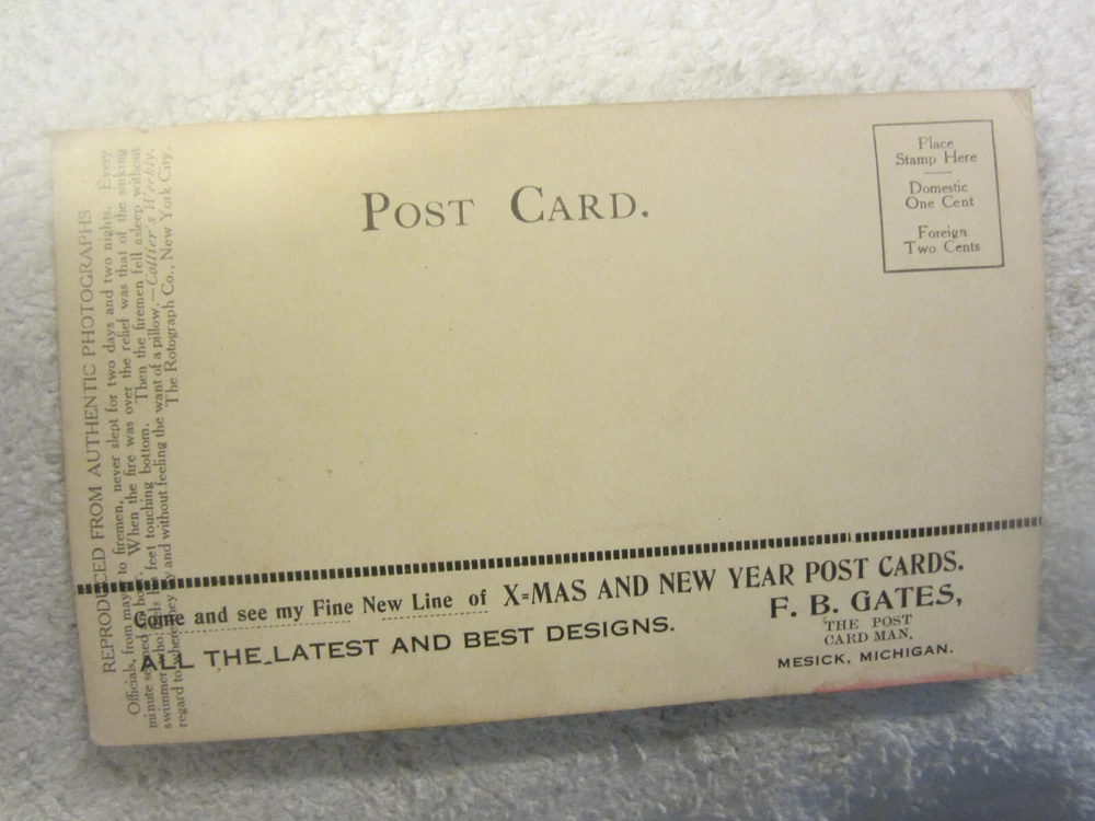Postage Condition:UnpostedType:Printed (Lithograph)Theme:Cities & TownsTime Period Manufactured:1900-1919Number of Items in Set:1Seller Notes:“Has some scrapes and wear. See pics for condition.”Original/Licensed Reprint:Licensed ReprintCountry/Region of Manufacture:United StatesUnit of Sale:Single UnitCountry:United StatesRegion:CaliforniaEra:Undivided Back (1901-1907)Subject:fireFeatures:Undivided BackCity:San FranciscoContinent:North AmericaSize:Standard (5.5 x 3.5 in)