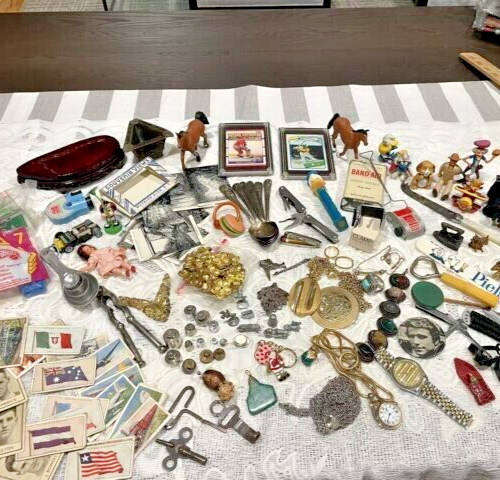 Sold as described - 1 lb lot Junk Drawer-old & new-Our Auction House in a BIG BOX, bulk wholesale. Clean, intact, ready to use or resell Mixed assorted small to large items. See description for categories. Photo shown is a sample of our warehouse inventory that we draw from. Here are our categories of what we may include in the 1 pound purchased shipment Shipped via USPS or ups in an appropriately sized box. You are Purchasing to Receive 1 pound of items selected from the following Jewelry pieces Vintage smalls Coins Watches Stamp sets Die-cast cars Small tools CD/DVD item Fashion clothing and accessories Mini toys,Pez Tools (old and new) Vintage postcards Varied trading cards New unopened personal care items Comic books Souvenirs Advertising pins Video games Electronics Old Records,8 track & Cassettes Historical items Old photos Varied books Housewares silver plate Vintage Art Glassware,China & pottery Marbles Household items Dolls & plush Eyeglasses Games & puzzles NOTE: Items are from our brick and mortar auction house inventory ! New, old and pre-owned items from our retail inventory are sold in "AS SHOWN, AS IS condition." That is the condition that we receive them in. Expect wear spots the need for TLC on older items, We have many categories that we fulfill from. Photo of item warehouse items being shipped serve as sample of what you may receive. Photo(s) provided are sampling only and are part of the description. TERMS-OF-SALE Return & Refund .You can contact us within 14 days to return the item for a refund or exchange as buyer's choice ,but Buyer pays return shipping .Please contact us to request a return authorization. Your name, auction number, and reason for return should be included in the email. All items returned must contain all original packaging materials. .Please repack the item carefully. Items returned will be tested and a new replacement will be shipped to the buyer immediately when found defective. In the event that a suitable replacement is not available then a refund will be issued. Shipping, handling and insurance fees are non refundable. .If the item is found non-defective, the item will be sent back to the buyer at buyer's expense. Items returned without RMA number will be refused and returned to the sender. Buyer is responsible for All Return Postage and Shipping Charges. Buyer is responsible for additional shipping costs for items that are returned refused and/or deliverable. We do not accept any returns without an authorization number on the box or label it is being returned in. ADDITIONAL INFORMATION We leave positive feedback for you after receiving payment. Your feedback is very important for us, positive feedback is highly appreciated. All communication is done through EBAY MESSAGES ONLY . If any question, please feel free to contact us via " Ask seller a question " or " Contact Seller ", We try our best to reply to your emails as soon as possible, due to high volume of daily incoming emails and time zone difference. Please allow 1-2 business days for us to response . Please let us know before leaving any negative feedback or open any disputes on Ebay, Give us the opportunity to resolve any problems and we will try our best to satisfy your needs. We are always striving to offer our customers high product quality, reasonable prices, excellent customer service