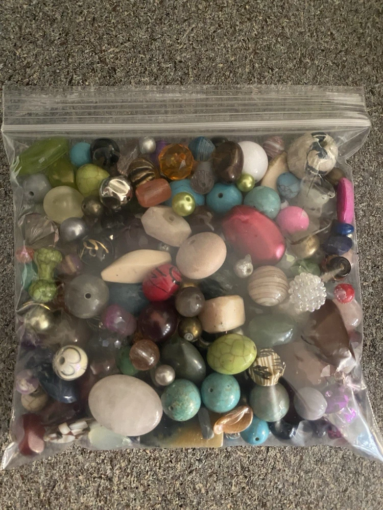 A variety of mixed used and new beads. All in excellent condition. Pictures are stock and will not be the exact beads you receive. Most 1 pound lots fit in a Ziploc sandwich bag. Size range varies from small to large. I'll try to get a good mix of all sizes in each lot. Materials are mostly glass, plastic, metal, wood, ceramic, stone, and more. 16 ounces (1 pound) of beads. About 450 grams Super Fun Lot!