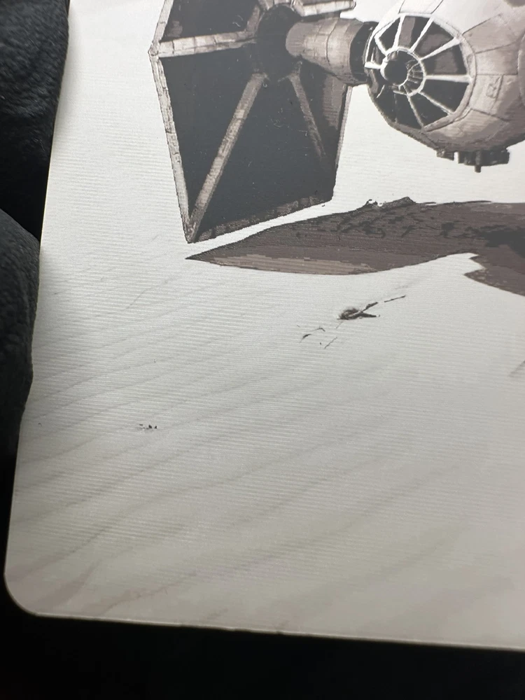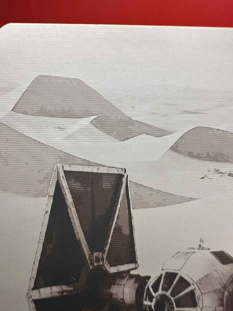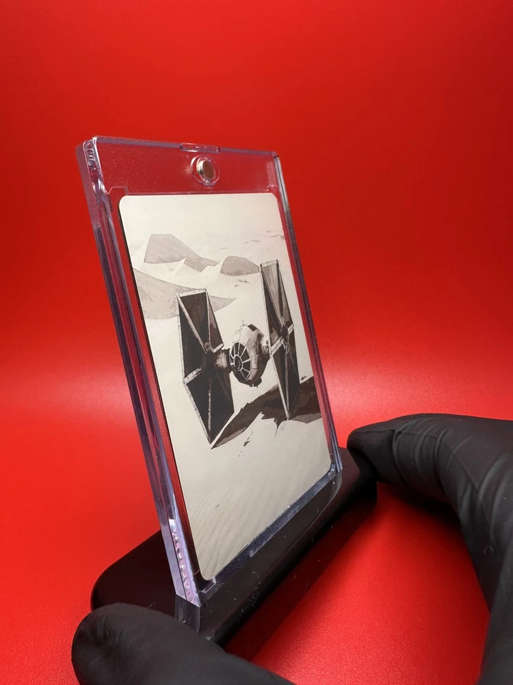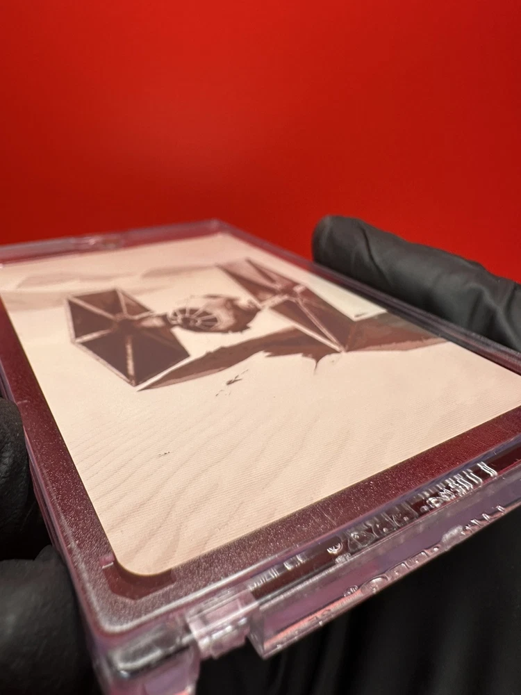 NEXUS MINT Presents - TIE Fighter 1 oz .999 Fine Silver Card (1 of 1) We are thrilled to announce a significant enhancement to our image resolution for our laser engraving process. Our dedicated team has pushed the boundaries of innovation to deliver a product that exemplifies sophistication and precision like never before. Prepare to be amazed as our laser engraving technology now boasts an extremely high resolution, ensuring every intricate detail is captured with stunning clarity. Each Nexus Mint Silver Card is a masterpiece, meticulously crafted from the finest .999 pure silver and engraved with a level of detail that will leave you in awe. Introducing our latest innovation: the Reverse Side Boast with a stunning "Frost Silver finish". After extensive testing and development, we are proud to present the new frost texture that takes our craftsmanship to astonishing heights. This addition showcases our commitment to excellence and luxury. The reverse side is meticulously engraved with essential details, including the Nexus Mint logo, weight, purity, and an exclusive mintage. This unique feature ensures that each piece is truly a one-of-a-kind art piece. What sets our silver card apart is the innovative and advanced laser engraving process employed, representing the pinnacle of our craftsmanship. This cutting-edge technique allows us to capture and replicate images with unparalleled clarity and finesse, surpassing traditional methods and setting a new standard in precision engraving. Whether you're commemorating a special occasion, gifting a luxurious keepsake, or adding to your collection of precious metals, our Nexus Mint Silver Cards are the epitome of elegance and quality. Expect nothing less than perfection as you hold a piece of art in your hands, reflecting our commitment to excellence and your discerning taste. Elevate your collection today with the Nexus Mint .999 Fine Silver Cards – where every engraving tells a story of precision and beauty. Don't miss out on experiencing the pinnacle of laser-engraved silver cards. Order now and see the difference for yourself! Card Highlights: - Metal content: .999 Fine Silver - Approximate weight: 1 oz ( However, the weight of each card may vary slightly due to material being removed in the laser engraving process.) - Dimensions of the card: 2 1/2 x 3 1/2 - 0.02 Inches (0.51mm) thickness - Exclusive mintage: 1 - Packaging includes: TIE Fighter 1 oz .999 Fine Silver Card (1 of 1) Ultra clear slab to handle and showcase the fine silver card (35pt card) (SEALED) One-Touch stand to display the fine silver card Trading card protectors Bubble wrapped At Nexus Mint our top priority is our customers. We are dedicated to ensuring that every customer service experience we offer is second to none. Our business is built on the premise of community engagement. We therefore thrive to promote and maintain an interactive environment that facilitates positive relationships with our customers. We hold our products to a high standard and each product must satisfy our quality assurance test. For us every single detail matter, from packaging to the production of the actual fine silver card. We aim to produce products that are innovative, timeless and of high quality. We're always happy to help! for questions regarding your order please don't hesitate to ask. Count on Nexus Mint for all your premium, fine silver and gold cards, bars and coins.