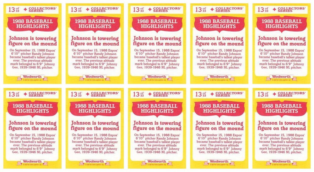 (10) 1989 Topps Woolworth Baseball Highlights Baseball #13 Randy Johnson Trading Card Lot Montreal Expos Condition: NM-MT
