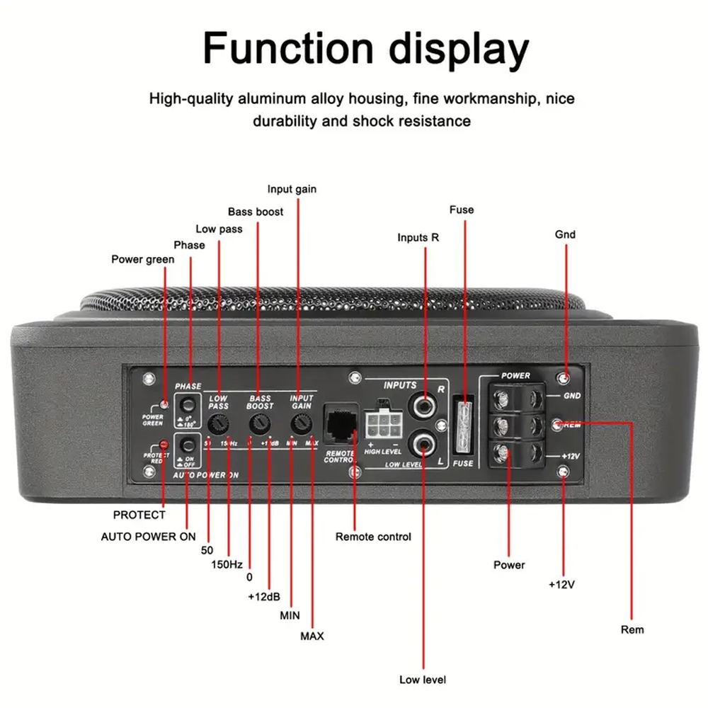 10" 600W Slim Under-Seat Subwoofer Powered Car Truck Sub w/ Amp Kit Speaker YK Specifications: Color: Black Material: Aluminum Alloy Power: 600W(Max.) Speaker Size: 10 Inch Impedance: 2Ω Frequency Response Ranges: 20-150Hz Sensitivity: ≥90dB Total Harmonic Distortion: <0.04% Bass Boost: 0-12dB Voltage: 12 V Item Size: 345 * 260 * 68mm/ 13.6 * 10.2 * 2.7in Package Size: 400 * 320 * 130mm/ 15.7 * 12.6 * 5.1in Package Weight: 5KG/ 11.0lb Packing List: 1 * Car Subwoofer 1 * Controller 1 * Power Cable 1 * Audio Cable 1 * Controlling Cable 1 * High Frequency Cable 1 * Ground Wire 10" 600W Slim Under-Seat Subwoofer Powered Car Truck Sub w/ Amp Kit Speaker YK Features: 10" 600W subwoofer, 360° to enhance the bass effect, nice sound quality, giving you a nice musical experience. Built-in amplifiers, reliable performance, can amplify the weak signal from the sound source and promote the sound of the speaker. High-quality aluminum alloy housing, fine workmanship, nice durability and shock resistance. Ultra-thin design, space-saving. Delivery includes installation wires, stable transmission and smooth connection, help you quickly complete the installation. Easy to install and use, compatible with 12.0V voltage for car, truck, RV, marine boat, etc. Specifications: Color: Black Material: Aluminum Alloy Power: 600W(Max.) Speaker Size: 10 Inch Impedance: 2Ω Frequency Response Ranges: 20-150Hz Sensitivity: ≥90dB Total Harmonic Distortion: <0.04% Bass Boost: 0-12dB Voltage: 12 V Item Size: 345 * 260 * 68mm/ 13.6 * 10.2 * 2.7in Package Size: 400 * 320 * 130mm/ 15.7 * 12.6 * 5.1in Package Weight: 5KG/ 11.0lb Packing List: 1 * Car Subwoofer 1 * Controller 1 * Power Cable 1 * Audio Cable 1 * Controlling Cable 1 * High Frequency Cable 1 * Ground Wire Payment Delivery details Terms of sales About us Contact us Payment 🔸We Process Your Order Within 1-2 Business Day upon Payment (Note: Not Counting Holidays or Weekends). 🔹We Only Ship to the Confirmed Address Provided by Ebay. Before You Pay, Please Make Sure Your Address in Ebay Matches the Address You Would like Us to Ship to. 🔸We Strive Our Best to Provide You the Most Reliable, Affordable Way of Shipping Service. but Sometimes Delivery Is Highly Depended on the Courier Company. If You Do Not Receive Your Item on Time, Please Contact Us Immediately for Further Assistance. Thank You for Your Understanding. Delivery details The Item Will Be Shipped Byusps First Class Shipping or Ups Surepost Shipping. Delivery Time Depends on Destination and Other Factors. We Appreciate Your Patience and Understanding. International Buyers Note: 1) Import Duties, Taxes and Charges Are Not Included in the Item Price or Shipping Charges. These Charges Are the Buyer ' S Responsibility. 2) Please Check with Your Country's Customs Office to Determine What These Additional Costs Will Be Prior to Bidding/Buying. We Have Two Warehouses: (1) Ca: Rowland Heights, California and (2) Ky: Hebron; the Delivery Warehouse Will Ship Randomly. If You Have Special Needs, Please Note the Delivery Warehouse, We Will Try Our Best to Meet Your Needs, Thank You for Your Purchase. Terms of sales ✅ Return Is Accepted Within 30 Days After the Buyer's Receiving the Item. ✅ If You Need Return, Let Us Know the Detailed Problem and Send Us some Pictures for Confirmation. Then Get a Address for Return or Refund .but We Don't Accept Artificial Damage of the Items. ✅ Manufacturer's Limited Warranty for Defective Items. About us ▶If You're Looking to Buy in Bulk or Looking for a Long Term Part Supplier, Please Contact Us Directly. We Will Provide You the Best Products and Service. Put off Your Doubts, Fears and Thusrest Assured Purchase. We Devotes to Providing High Quality Parts & Accessories for All Types of Cars, Trucks, Atv, Utv& Motorcycles, And Offering 100% Customers Satisfaction for You. We Will Provide You the Best Products and Service. Contact us Our Aim Is to Deliver Great Products at Unbeatable Prices. Customer Service Is of Paramount Importance to Us. Should You Be Dissatisfied with Our Service for Any Reason? If You Have Any Question, Please Feel Free to Email Us ,and We Will Reply You Asap. If No Response Within 24 Hours, Please Check the Spam of Mail Box or Kindly Re-send It to Us. We Greatly Appreciate Your Five Stars Positive Feedback. Brand yksei-autoparts® MPN Does not apply Material Aluminum Alloy Power 600W(Max.) Speaker Size 10 Inch Impedance 2Ω Frequency Response Ranges 20-150Hz Sensitivity ≥90dB Total Harmonic Distortion <0.04% Bass Boost 0-12dB Voltage 12 V Package Weight 5KG/ 11.0lb Type Enclosed Powered Subwoofer Type Under-Seat Active Power Amplifier