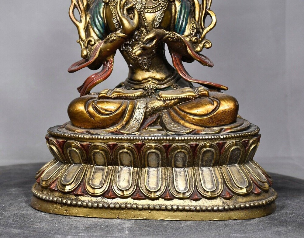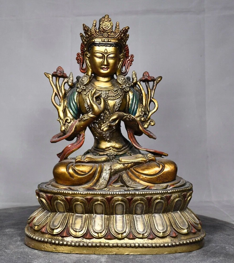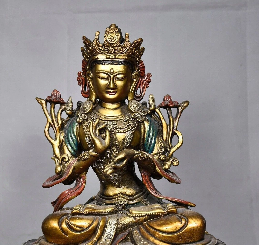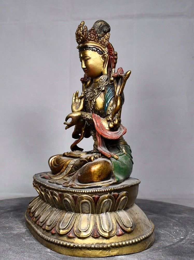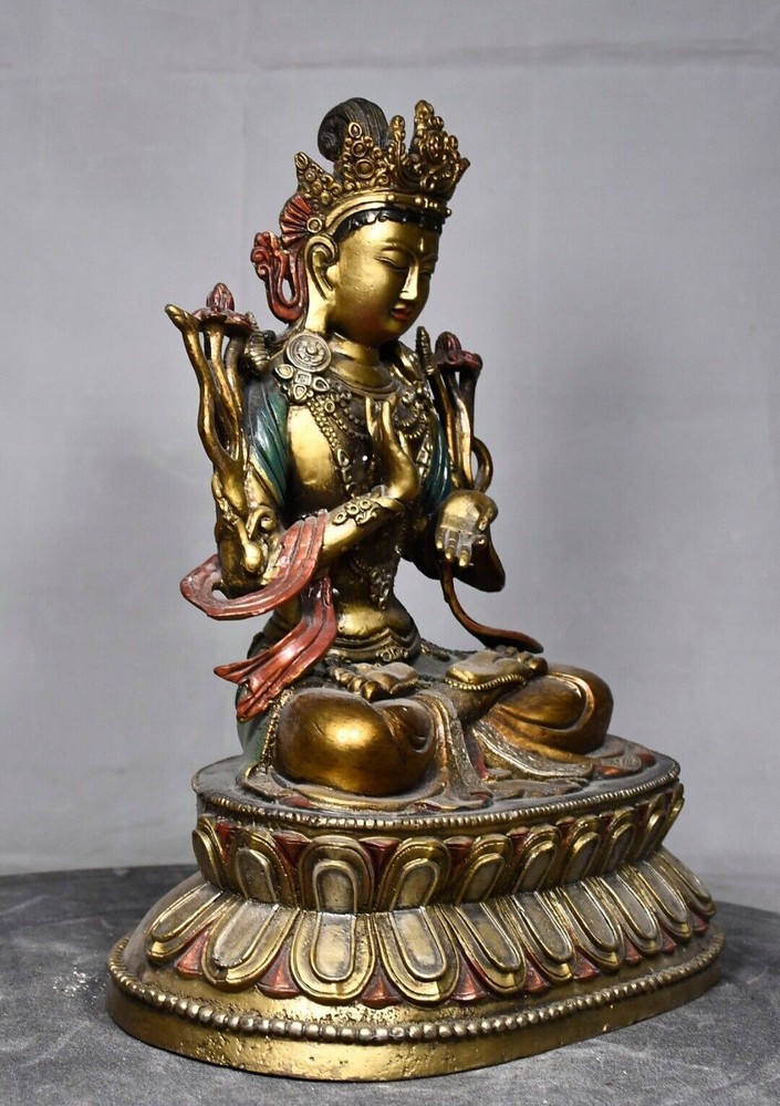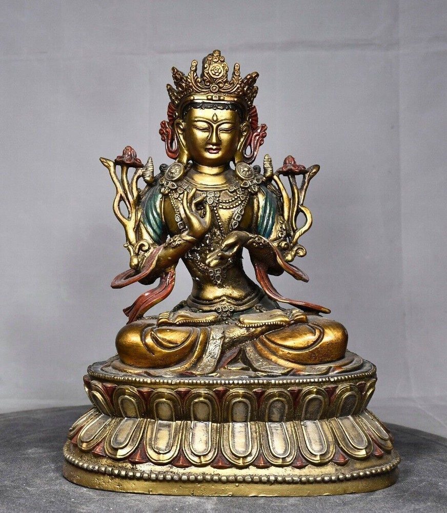 Size: Height: 25cm Wide: 19cm weight: 2kg Material: bronze gilt NOTE: Withno wood stand!!!! Condition: Good condition Origin: China