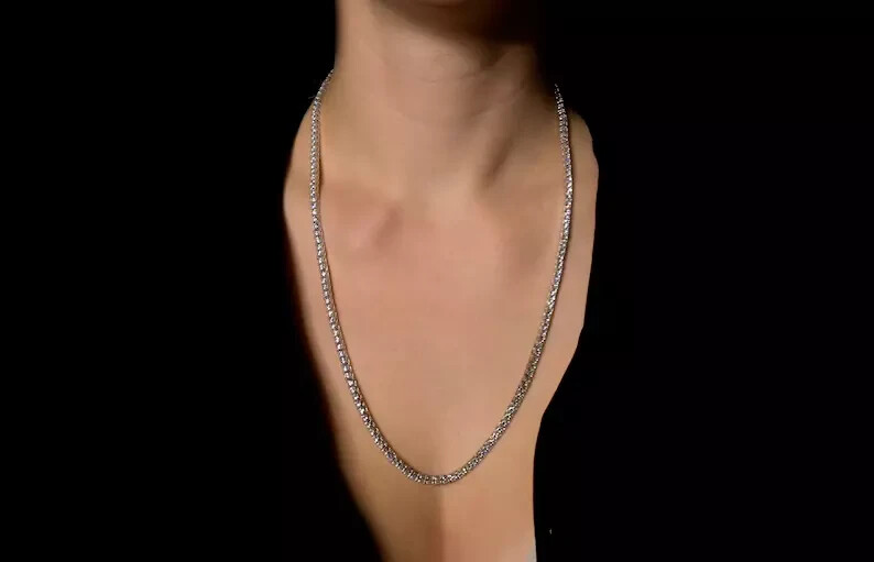 Avani Jewellers ! Buy With Confidence From A Trusted Seller!!! !!! We are here to help you!!! Note: This Necklace is made to order. Kindly confirm your Necklace Size within 24 hours for speedy process of Production Metal: 14k White Gold Plated Base Metal: Sterling Silver Stone Creation: Lab-Created